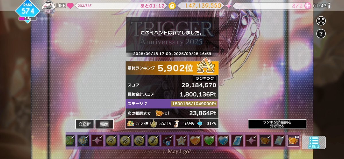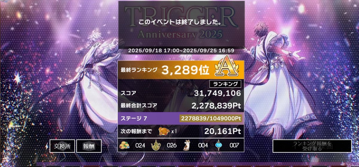 今年も無事Aランクで着地できたので満足です✌️ #TRIGGER記念日2025 pic.x.com/vyAse8WHZ1
