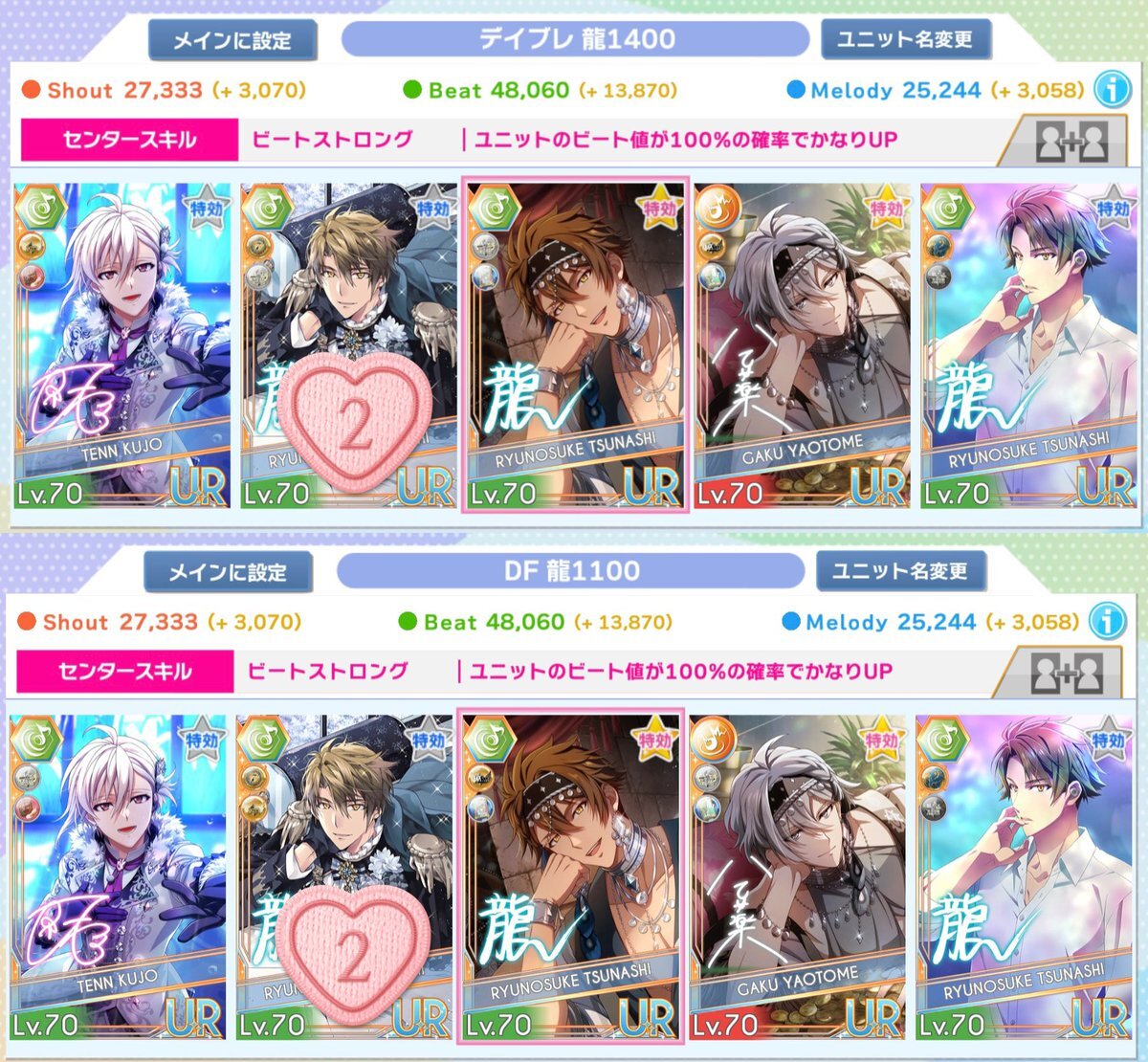 各曲編成✍️赤曲❤️ 自デッキ 🍀数字なしスキルマ 🍀ブローチ2個開放 フレンド様 🍀記念日2025楽(ALL700+赤1100) 縮小楽さんは1枚しか育ててないのでフレンド様にお借りして、なんとか手持ちのSU入れました🥹10th楽さんお迎え出来てたのでスキルマSU並べられて良かったです☺️ #TRIGGER記念日2025 pic.x.com/Un1frXj07a