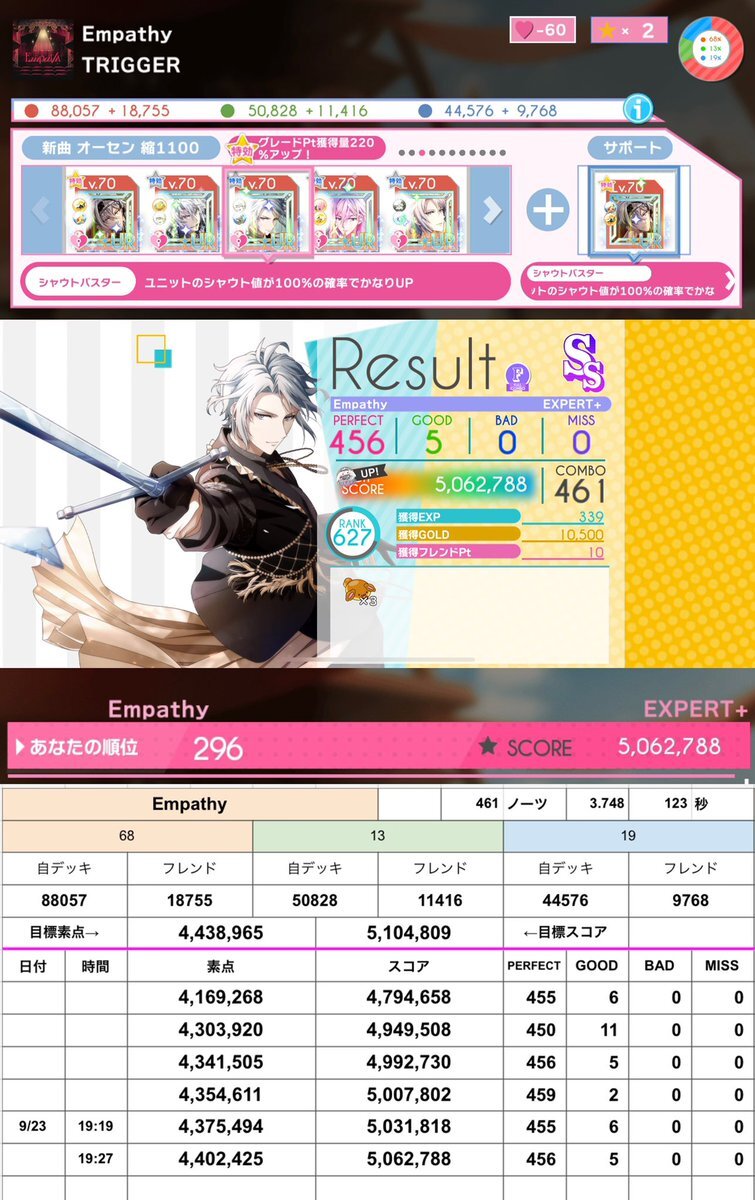 楽曲振り返り✍️ 🎶Empathy(達成率99.18%) 曲はすごく好きな感じだったけど時間無さすぎて諦めた曲😭ポコン!と伸びる気配はあっただけに残念😣新曲かDFかで迷った中でDFを選べたのはスコアタの感覚が少し育ったからだと思えたし、私に出来る最大限だったので悔いなし︎︎👍🏻︎︎ #TRIGGER記念日2025 pic.x.com/rltZFTO4Uk