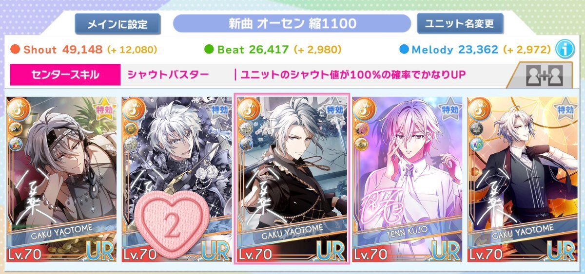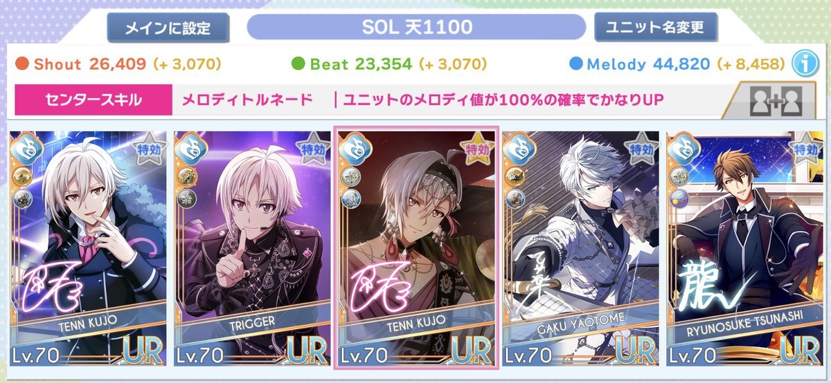 各曲編成✍️青曲💙 自デッキ全カード 🍀数字なしスキルマ 🍀ブローチ2個開放 フレンド様 🍀記念日2025天(ALL700+青1100) 5周年天を入れたい所だけどブラホワTRIGGERカードが該当しないので青は悩ましい😖判定強化を入れる旨みがなかったのでこの編成に落ち着きました🥺 #TRIGGER記念日2025 pic.x.com/qeJ0MXXTXy
