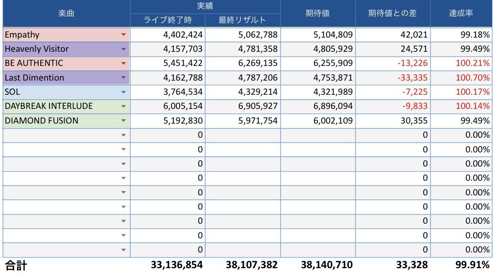 計算期待値と現実✍️ 8日間中5日間野球⚾️💦時間捻出するのが難しかったので繋がりにくい新曲はほぼ粘らず😣去年は1曲も理論値超えが出来なかったTRIGGER記念日だけど、今年は苦手曲を含め4曲も理論値超えられたのはスコアタのコツを少し掴めた気がしてめちゃくちゃ嬉しかった🥲✨ #TRIGGER記念日2025 pic.x.com/kc16VqWx5K