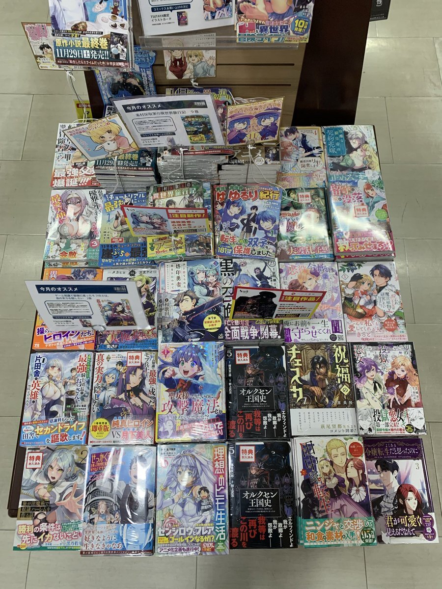 遅くなりました💦 ✨11/14(金)の新刊コミック出ました✨ 今日は特典盛りだくさんです‼️ ①異世界コミック ②青年コミック #TSUTAYA一関中央店 #一関市 #書店 #本屋 #岩手県の本の入荷情報 pic.x.com/XJTdjYRcac