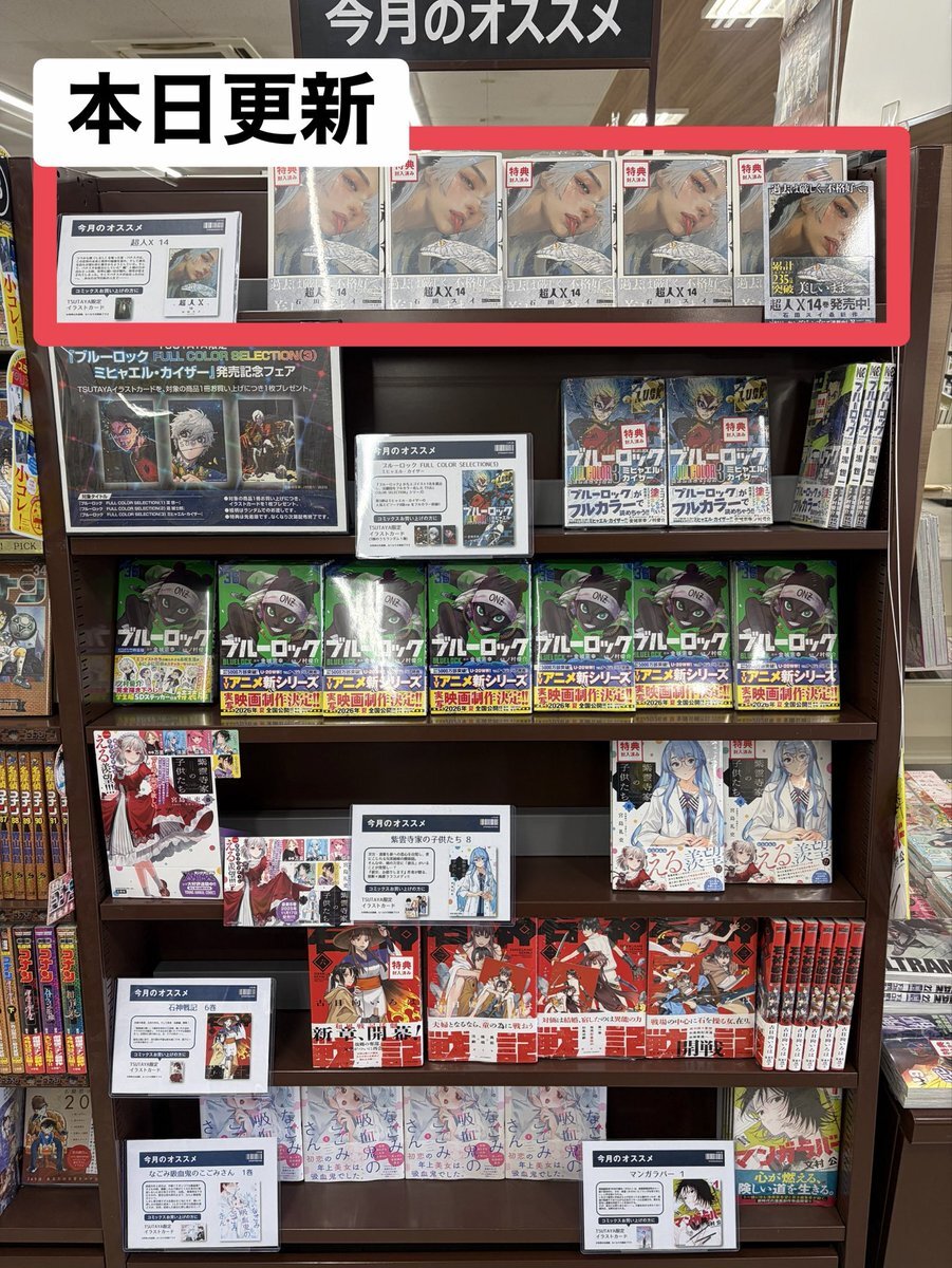 ✨11/20(木)の新刊コミック出ました✨ ①青年コミック #超人X は今月のオススメコーナーです。 #集英社 #日本文芸社 #宝島社 #TSUTAYA一関中央店 #一関市 #書店 #本屋 #岩手県の本の入荷情報 pic.x.com/86S98LtJav