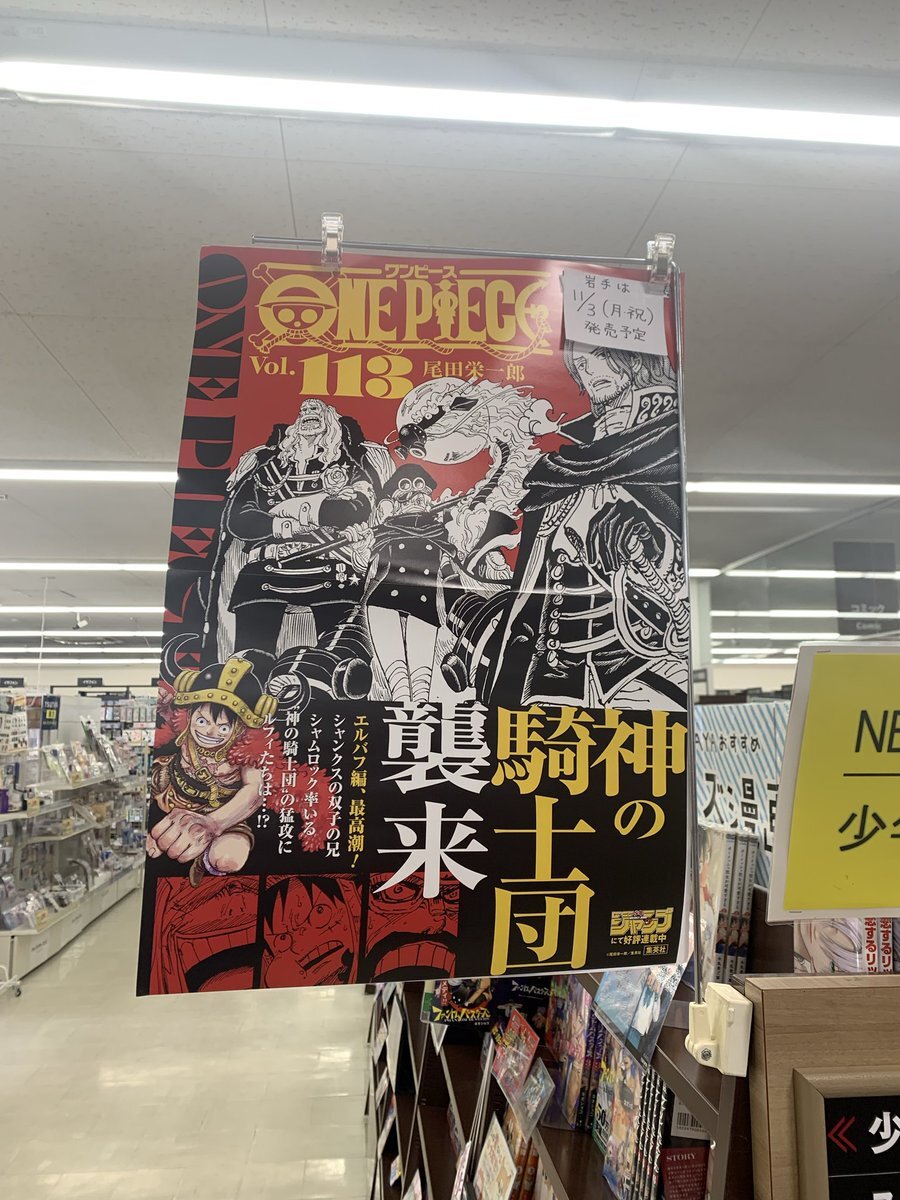 【予告】 今入荷予定調べてて気づきました😳 11月発売のONE PIECE 113巻ですが••• なんと••• 岩手では••• 全国発売日より1日早い 11月3日(月•祝)に買えるみたいです🥳 3連休最終日は岩手の書店へGo‼️ #TSUTAYA一関中央店 #一関市 #書店 #本屋 #岩手県の本の入荷情報