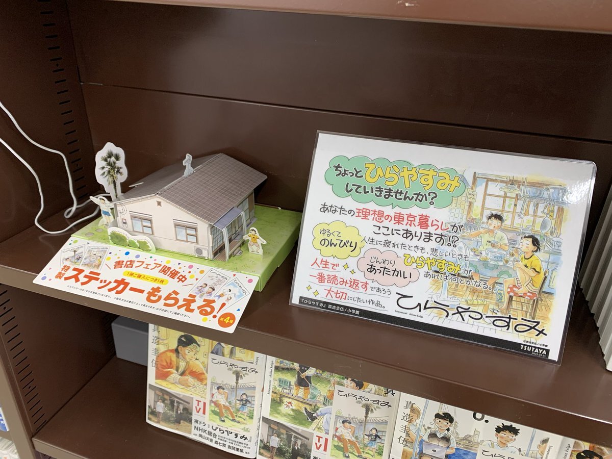NHKドラマ化決定 #ひらやすみ 書店フェアセット入荷しました🏠 担当Mの個人的なおすすめはこの平屋型のPOP😍 屋根をパタパタして欲しくて、手に取れるようにしました。 ぜひご覧ください🤩 #TSUTAYA一関中央店 #一関市 #書店 #本屋 #小学館 pic.x.com/jVLQNlaoiv