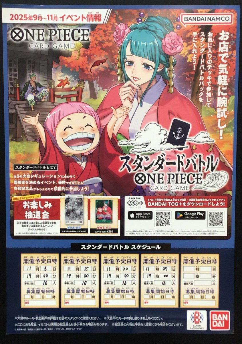 〖明日のトレカ大会〗 明日11/15(土)は11時より #遊戯王OCG ランキングデュエルを、14時より #ワンピースカード スタンダードバトルを、18時より #バトルスピリッツ ショップバトルを開催します🎉 ※大会開始30分前から、2階のデュエルスペースにてエントリーの受付を開始します。 #TSUTAYA大垣店 pic.x.com/gQlK5WEv6e