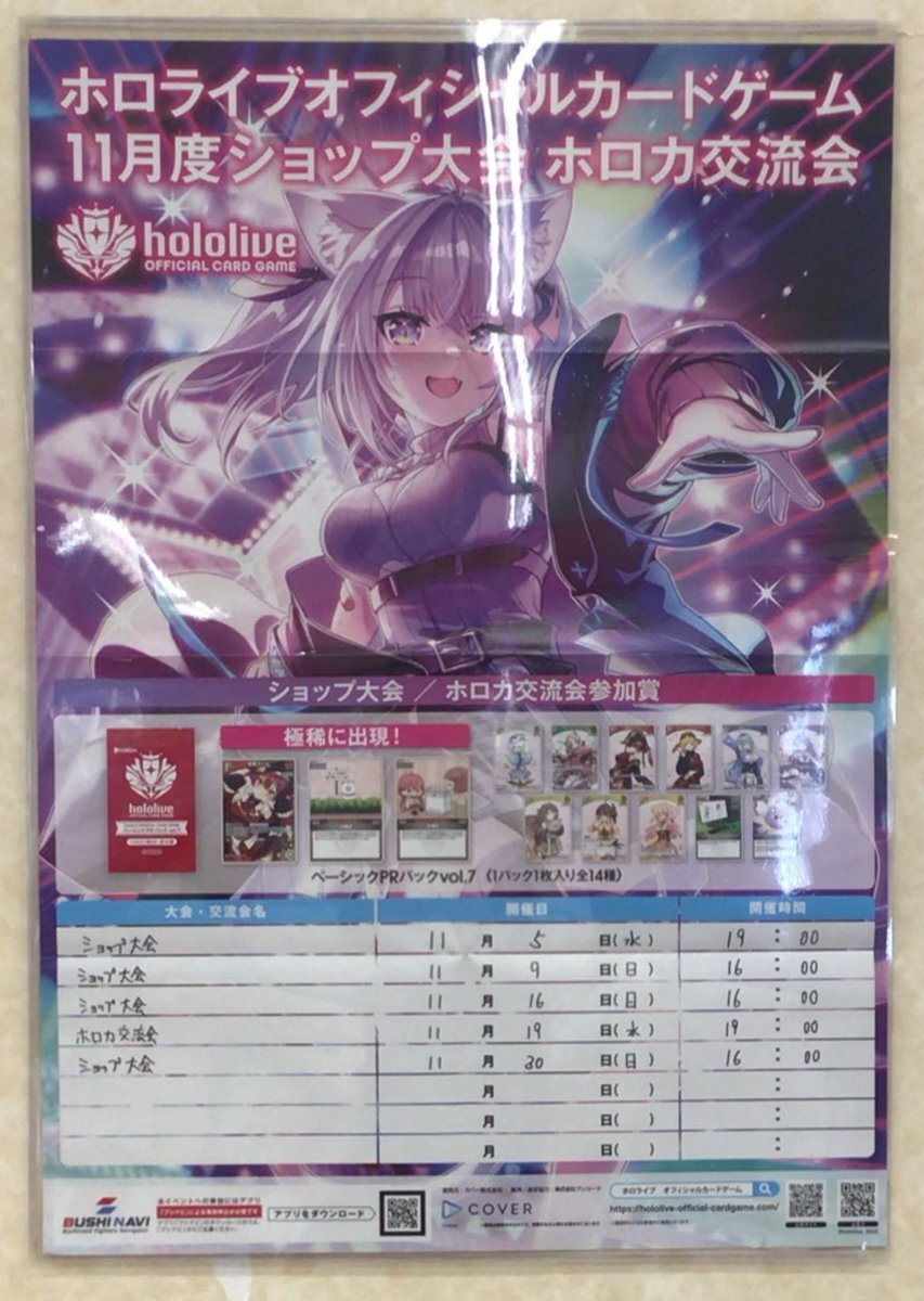 〖明日のトレカ大会〗 明日11/16(日)は11時より #遊戯王ラッシュデュエル トーナメントバトルを、14時より #ポケモンカード 初心者向け講習会を、16時より #ホロライブOCG ショップ大会を開催します🎉 ※大会開始30分前から、2階のデュエルスペースにてエントリーの受付を開始します。 #TSUTAYA大垣店 pic.x.com/NumrD64nYx