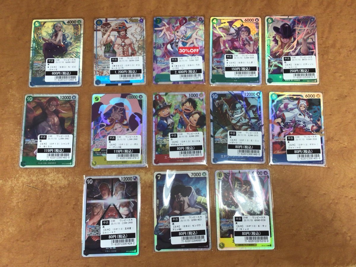 ワンピースカードをいつくか買取致しました🎉 状態の確認はお近くのスタッフにお尋ねください。 ご来店お待ちしております🙇‍♀️ #ワンピースカード #ワンピース #TSUTAYA大垣店 pic.x.com/rMC7pmT2gc