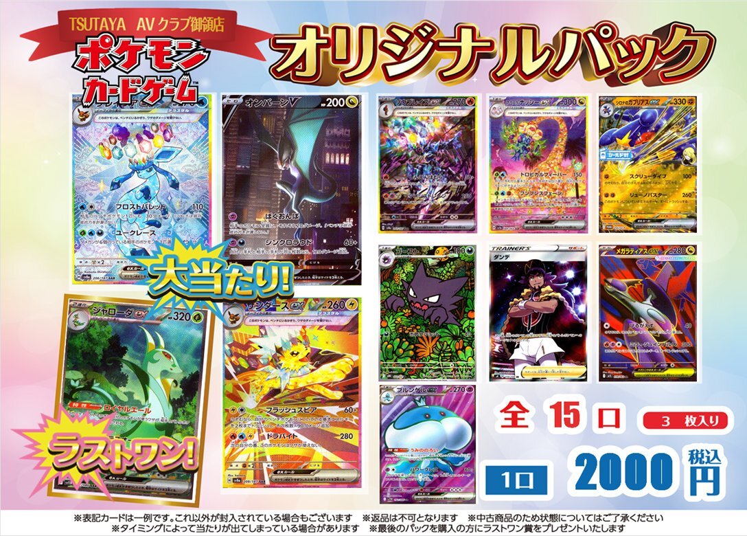 🎯オリパ 情報🎯 「#ポケモンカードゲーム」 ▶️1口2000円 ▶️全15口 オリパ 投入しました🤩 是非お試しください🪭 ご来店お待ちしております🦸✨ #TSUTAYA御領店 #熊本市 #オリパ #トレカ #ポケカ #トレカ #ポケモンカード pic.x.com/f6odo7grzz