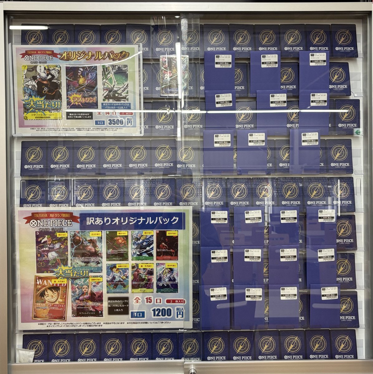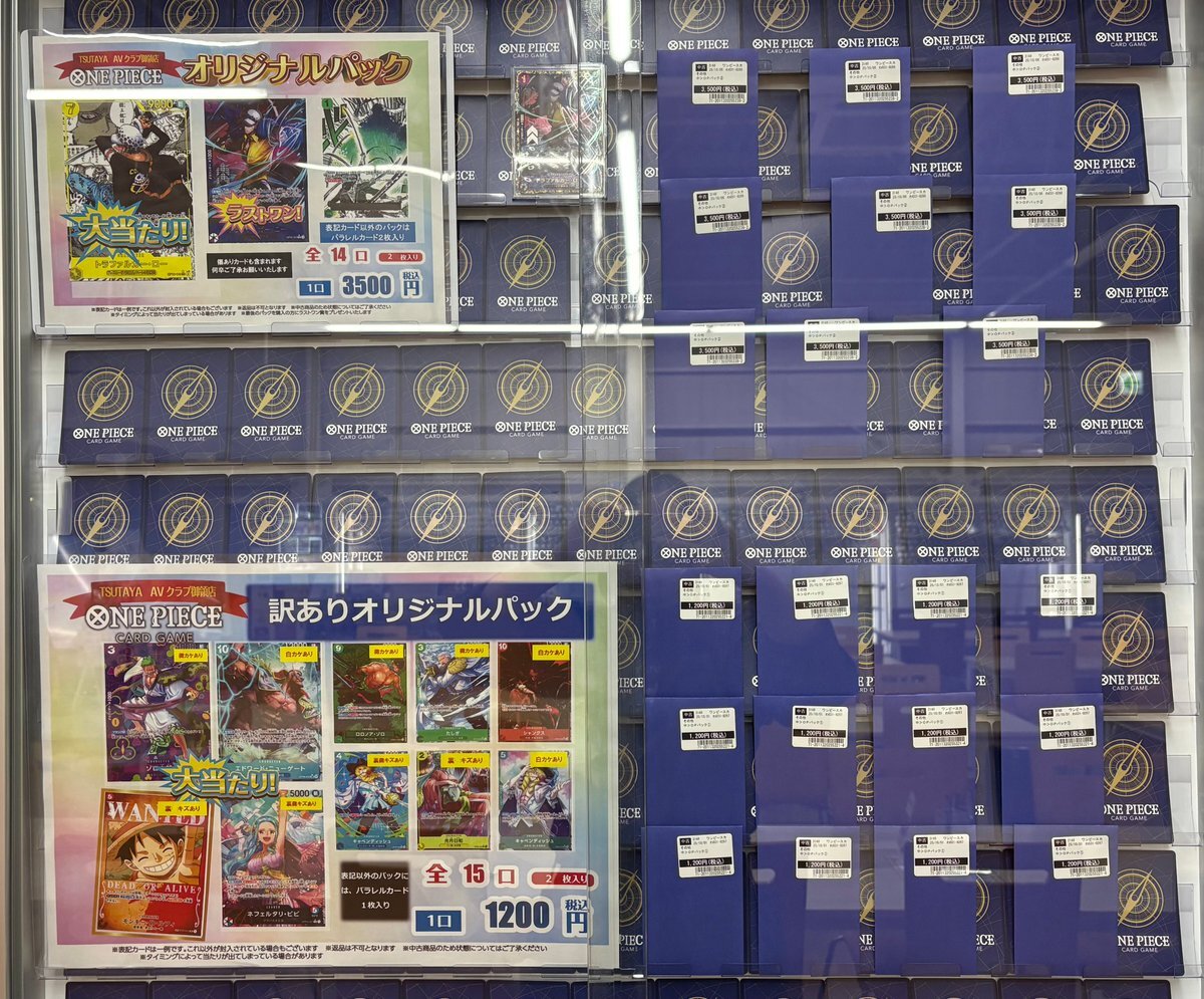 #オリパ 情報 】 #ワンピースカードゲーム ▶️3500円 14口 👉残り9️⃣個 ▶️1200円 15口 👉残り1⃣2⃣個 ご来店お待ちしております😄🙌 #ワンピース #ワンピ #トレーディングカード #TSUTAYA御領店 #熊本 pic.x.com/vNWsPTnb8G