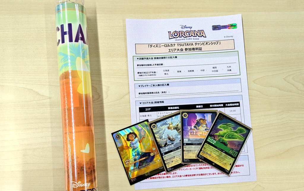 【大会情報】 #ディズニーロルカナ      #TSUTAYAチャンピオンシップ店舗予選大会 12名様での参加でした✨ 🏆優勝🏆 ▶️Pさん ▶️デッキ名:エメラルドスティール ▶️コメント : めちゃくちゃうれしい!権利やっと取れました!! おめでとうございます🎊 本戦も頑張ってください🏋️ #TSUTAYA御領店 pic.x.com/EM9y14Sqbv