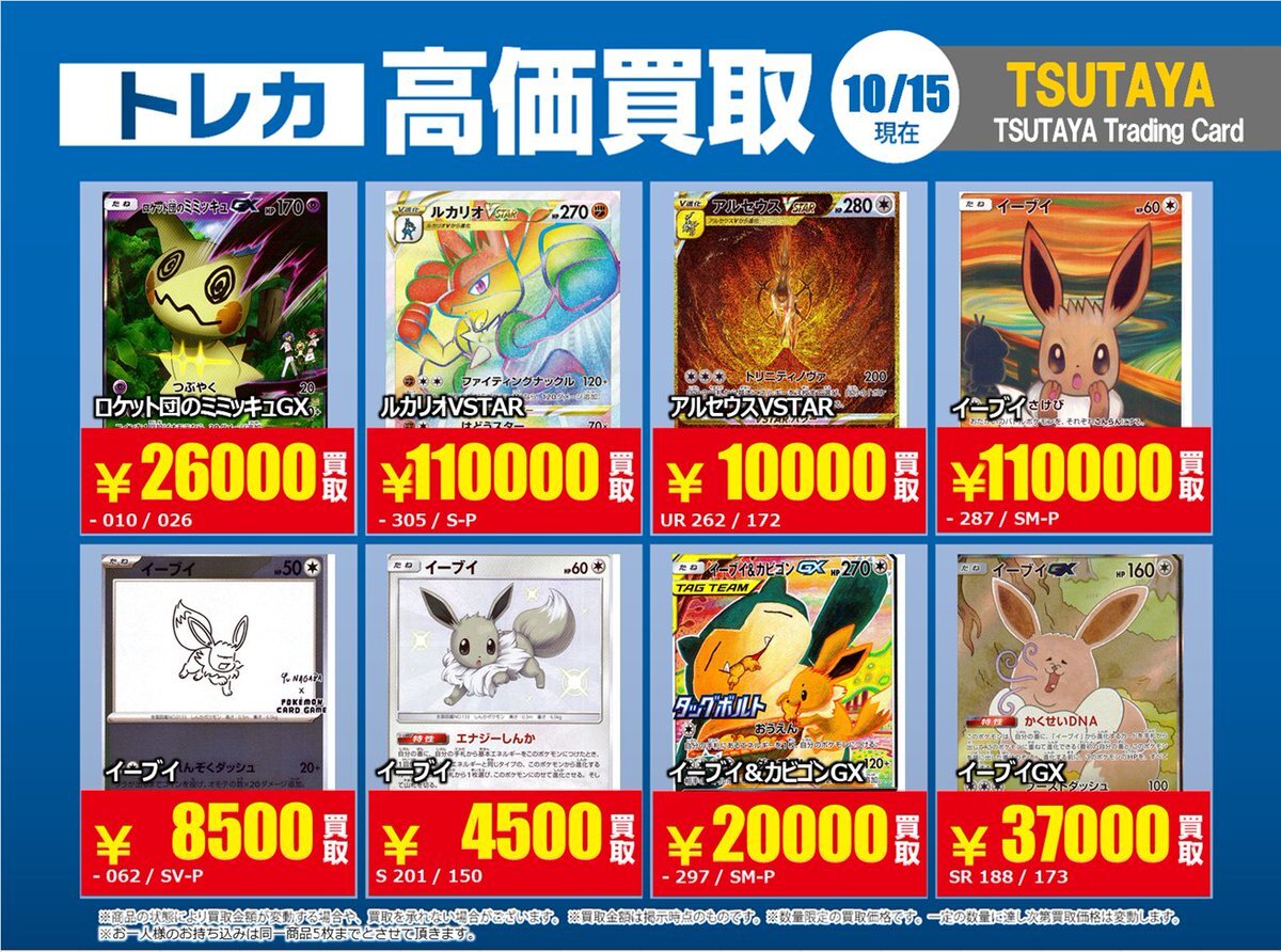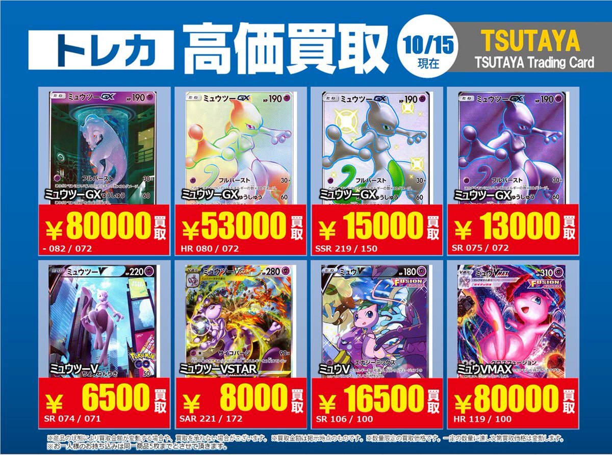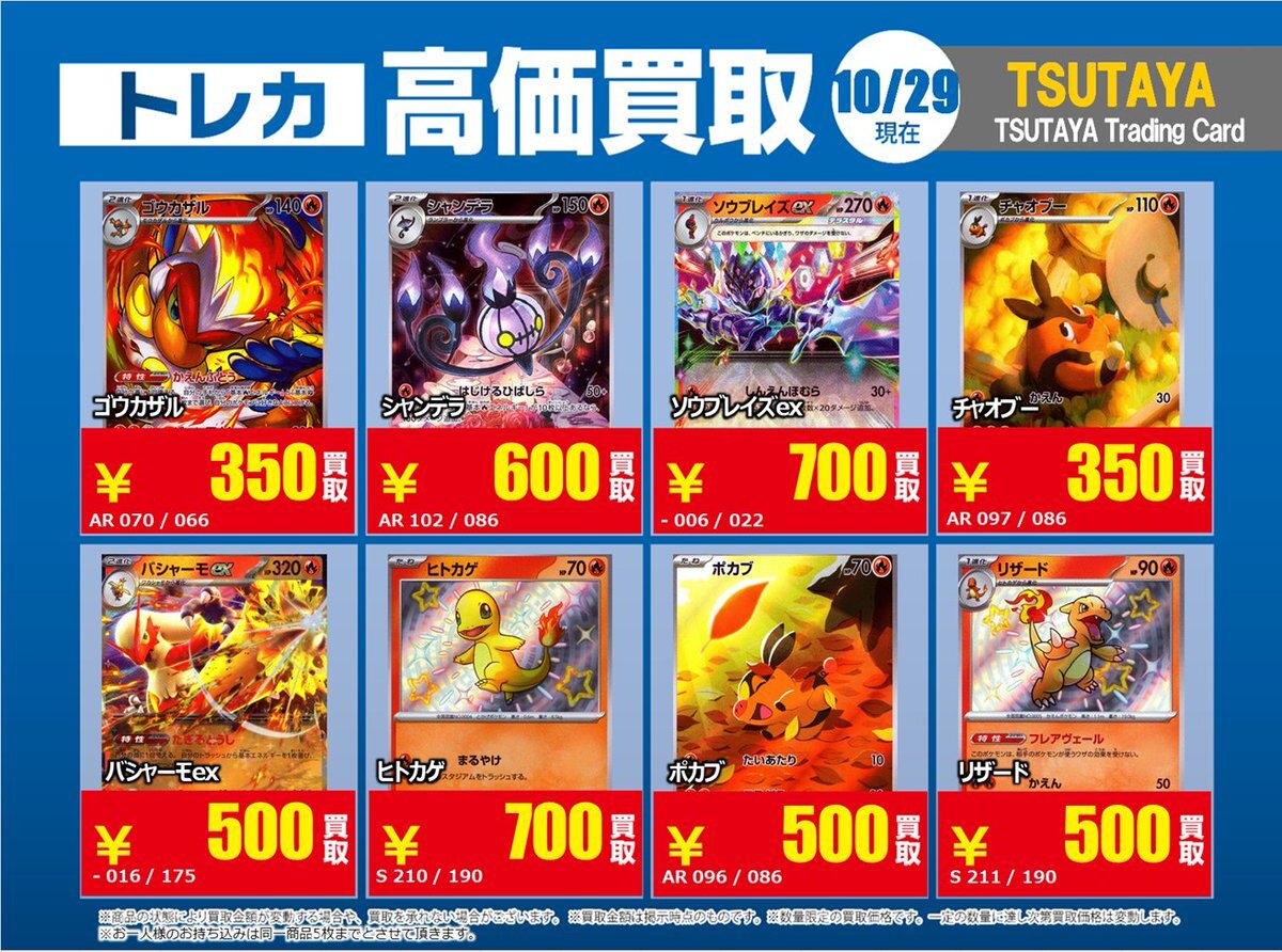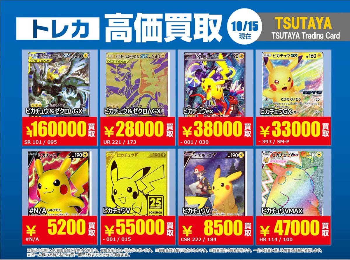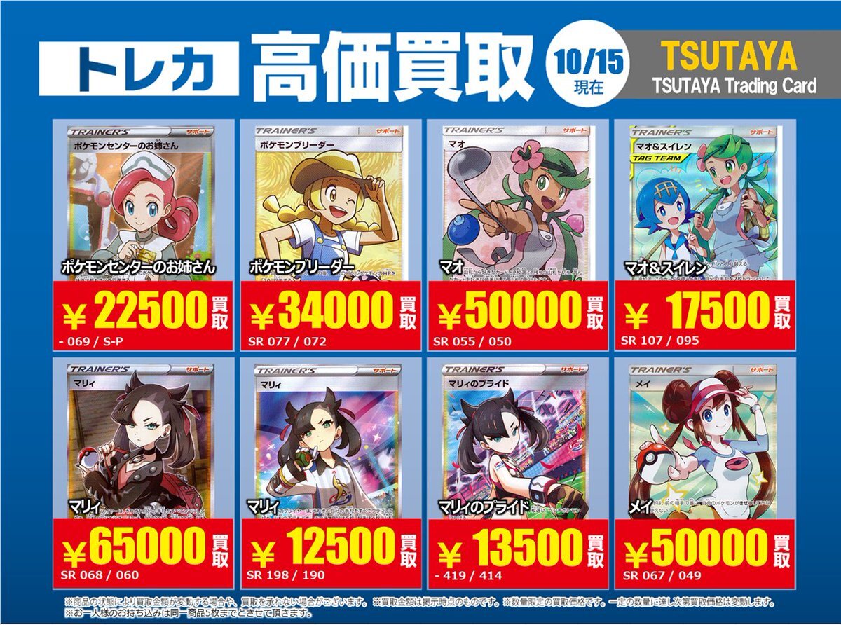 【高価買取情報】 10/28まで #ポケモンカード #エクストラ ④ 高価買取商品をお持ち頂く場合は レジにてX掲載カードと必ずお伝え下さい。 申告が無い場合は通常価格での買取 となってしまいますのでお気を付け下さい ※在庫状況や商品状態で買取価格が変動 または終了する事がございます #TTC錦糸町店 pic.x.com/hzu0DTdtNA