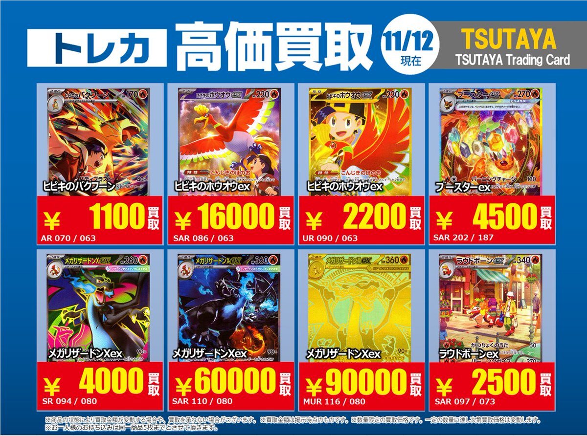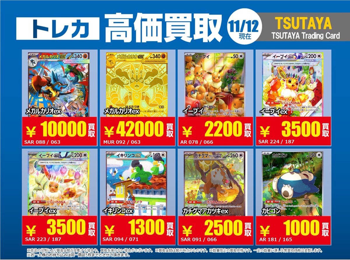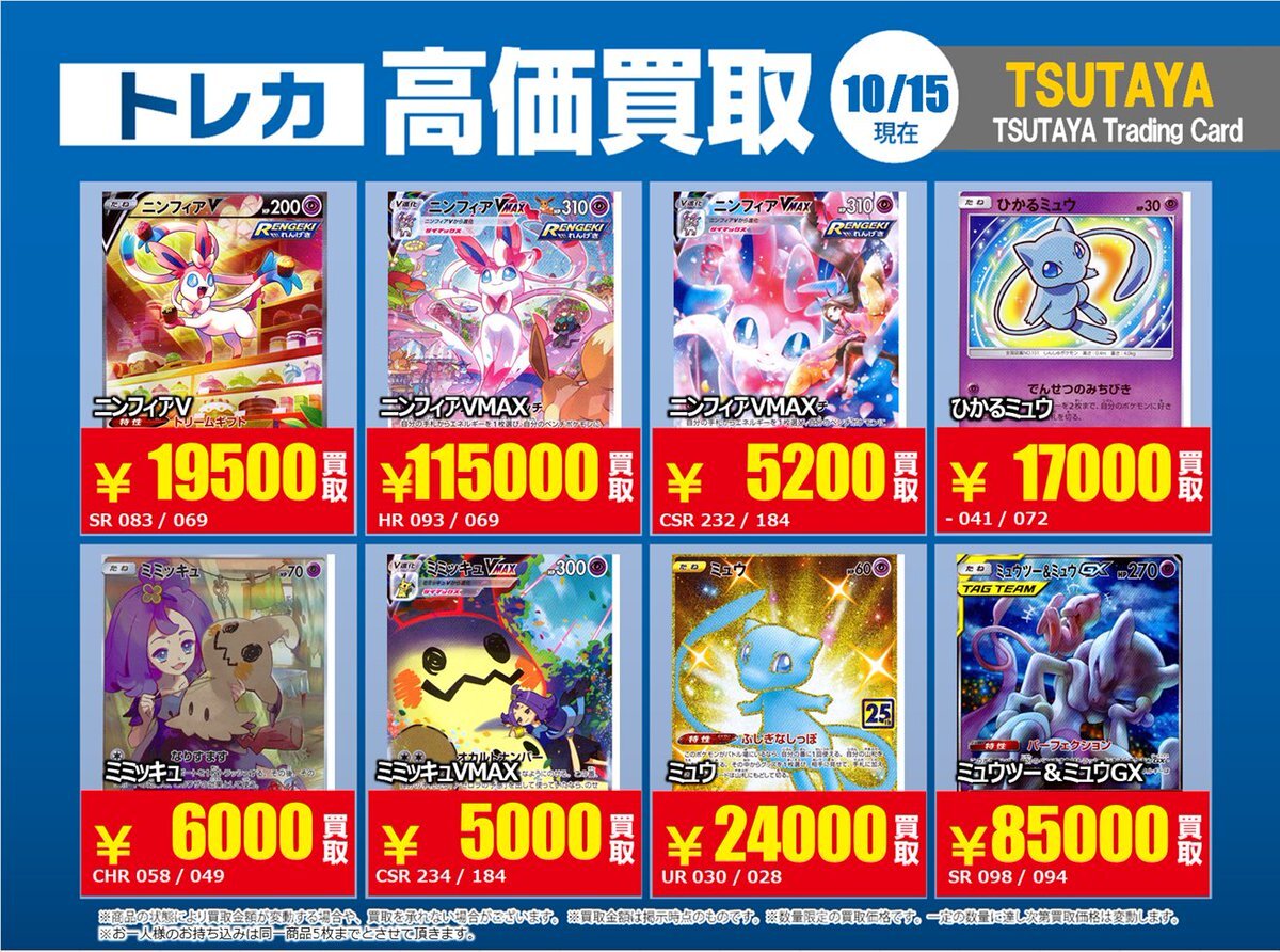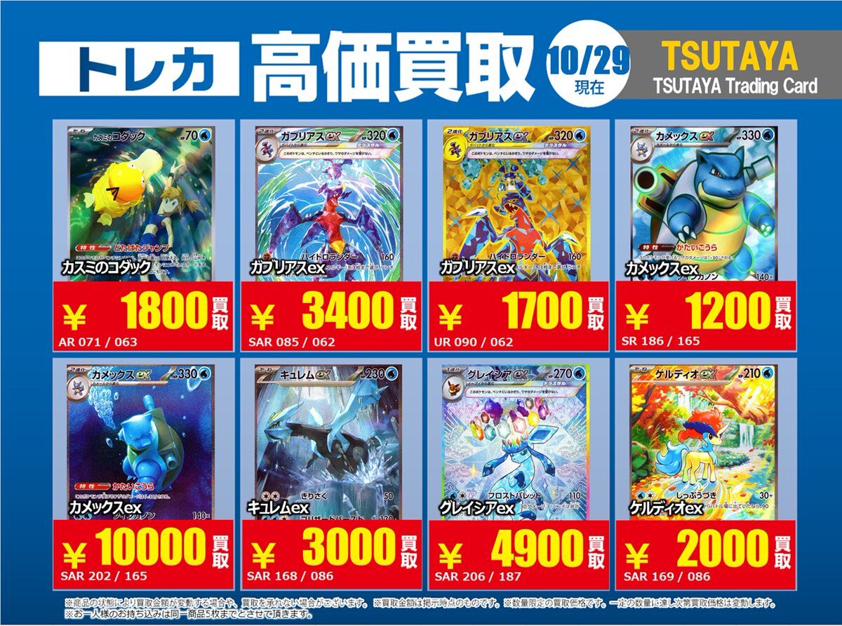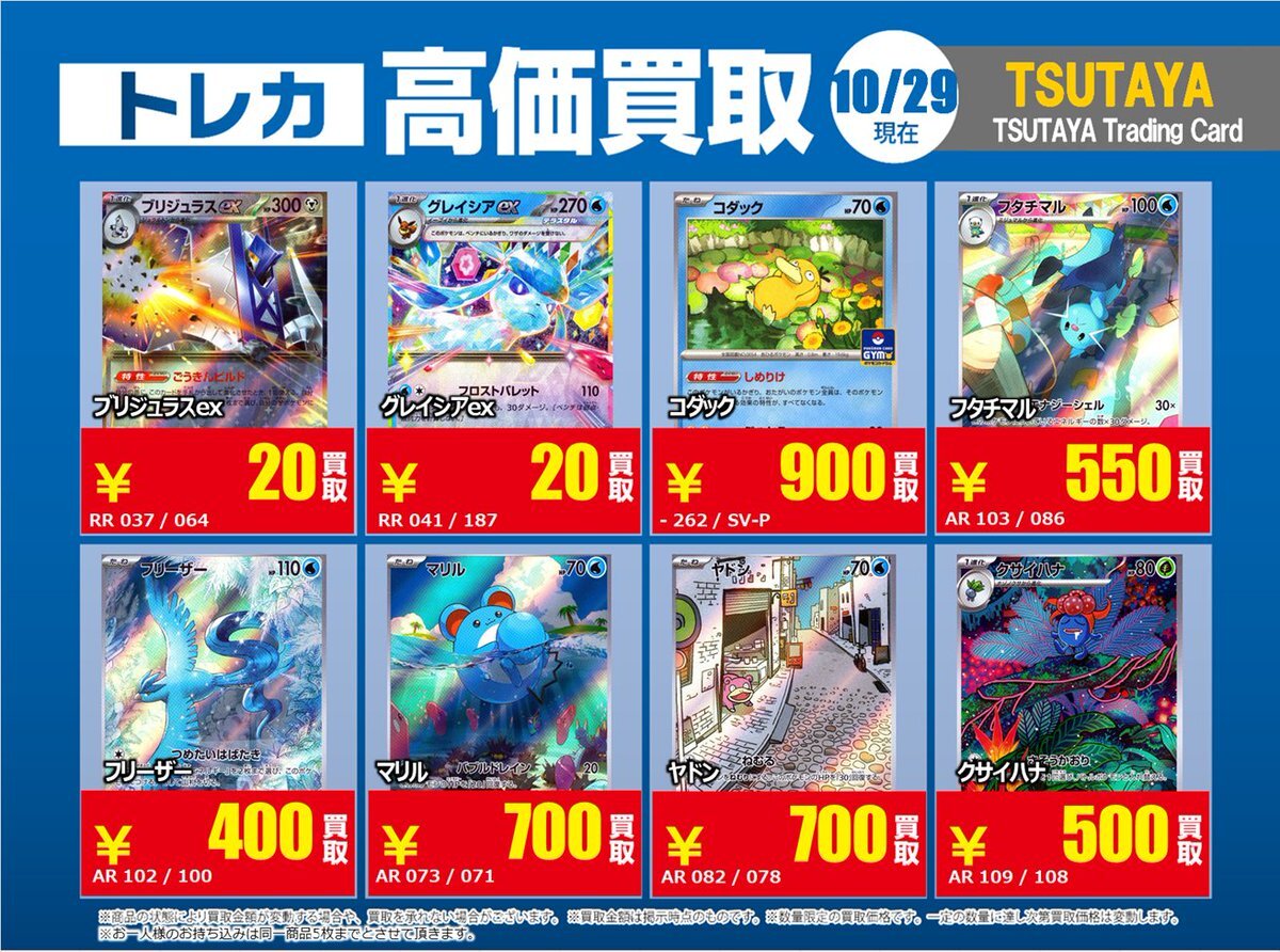 【高価買取情報】 11/4まで #ポケモンゲーム #高額 ⑧高価買取商品をお持ち頂く場合は レジにてX掲載カードと必ずお伝え下さい。 申告が無い場合は通常価格での買取 となってしまいますのでお気を付け下さい。 ※在庫状況や商品状態で買取価格が変動 または終了する事がございます #TTC錦糸町店 pic.x.com/HFcM4h5SpL