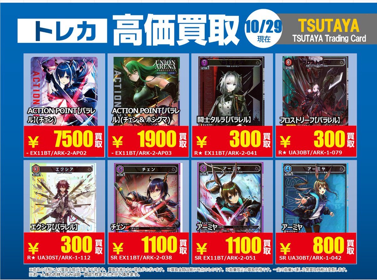 【高価買取情報】 10/28まで #ユニオンアリ 高価買取商品をお持ち頂く場合は レジにてX掲載カードと必ずお伝え下さい。 申告が無い場合は通常価格での買取 となってしまいますのでお気を付け下さい ※在庫状況や商品状態で買取価格が変動 または終了する事がございます #TTC錦糸町店 pic.x.com/mXLJzsXP0t
