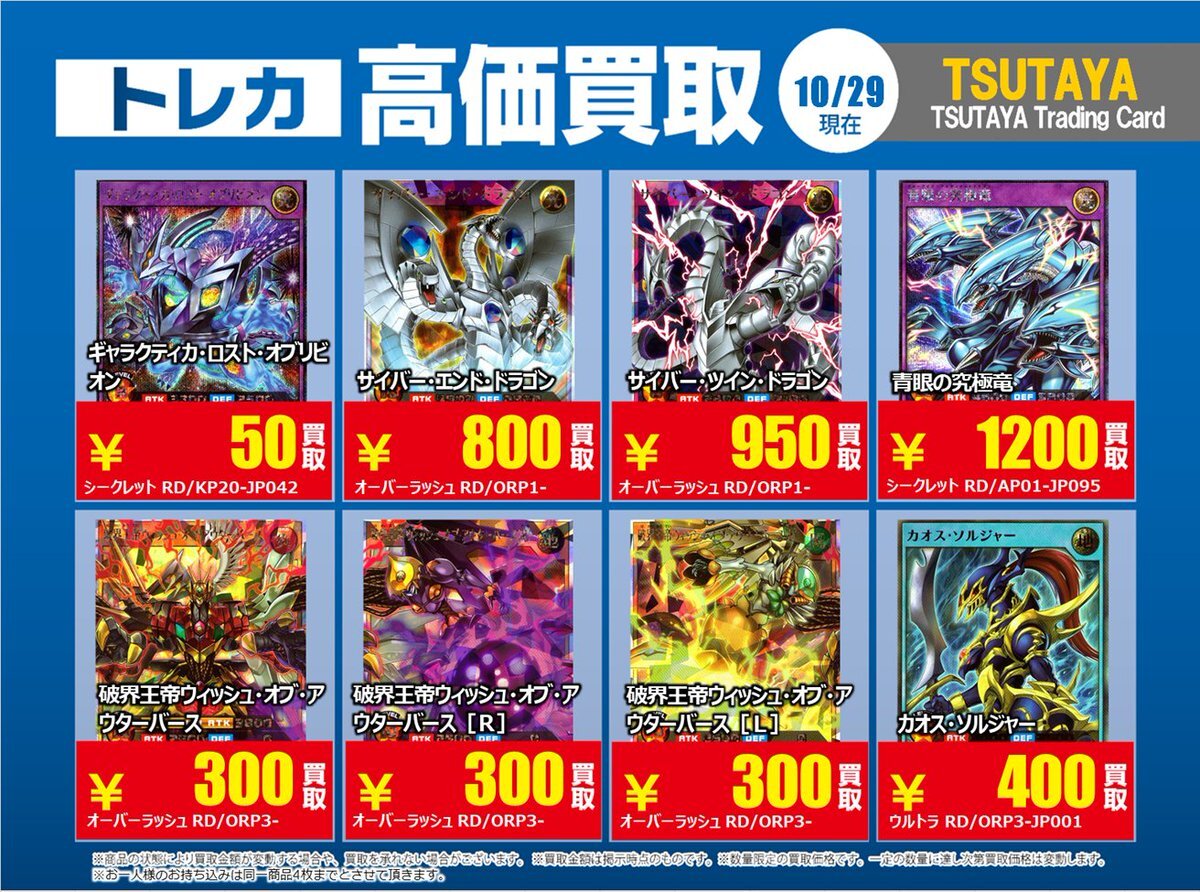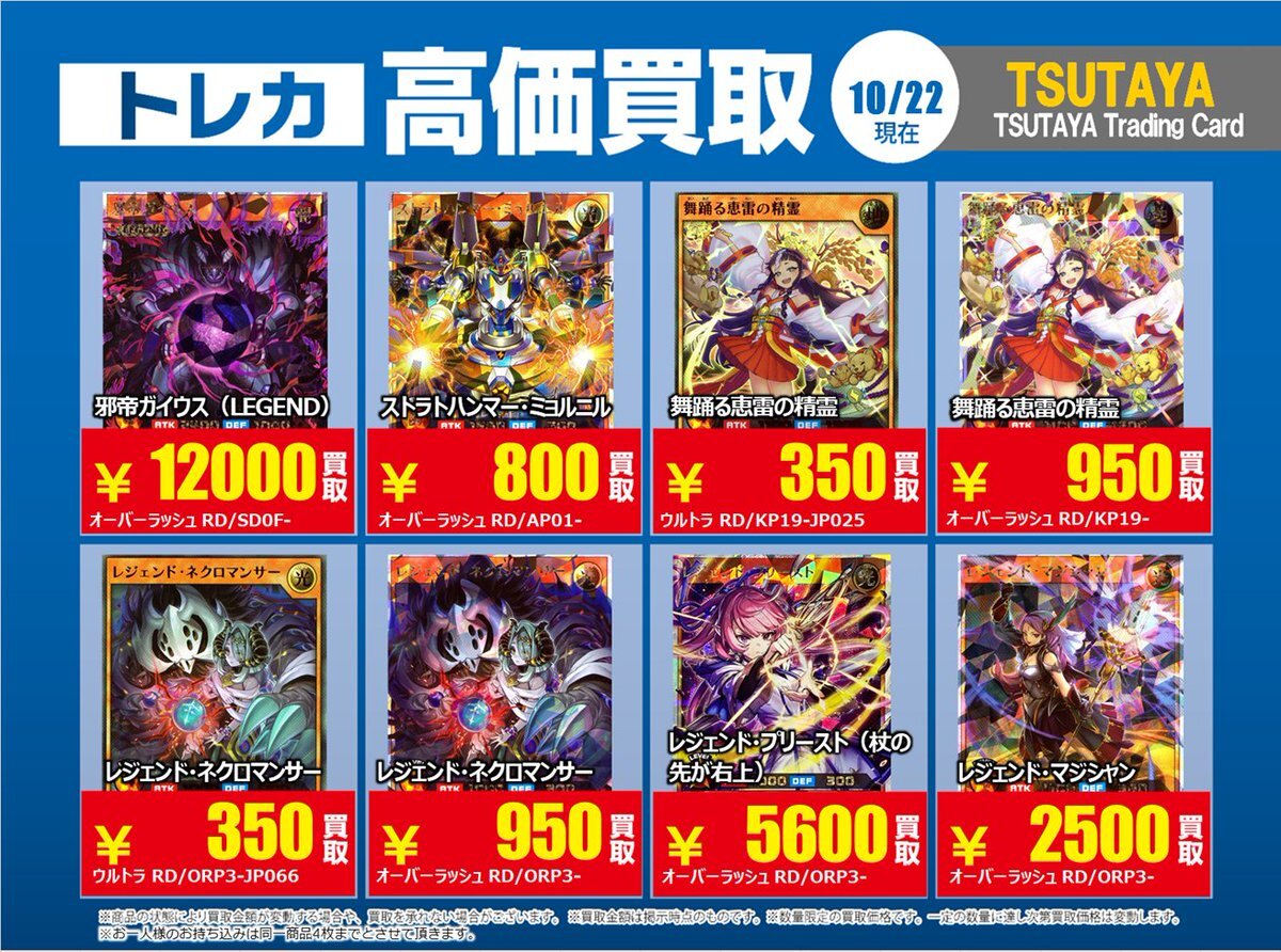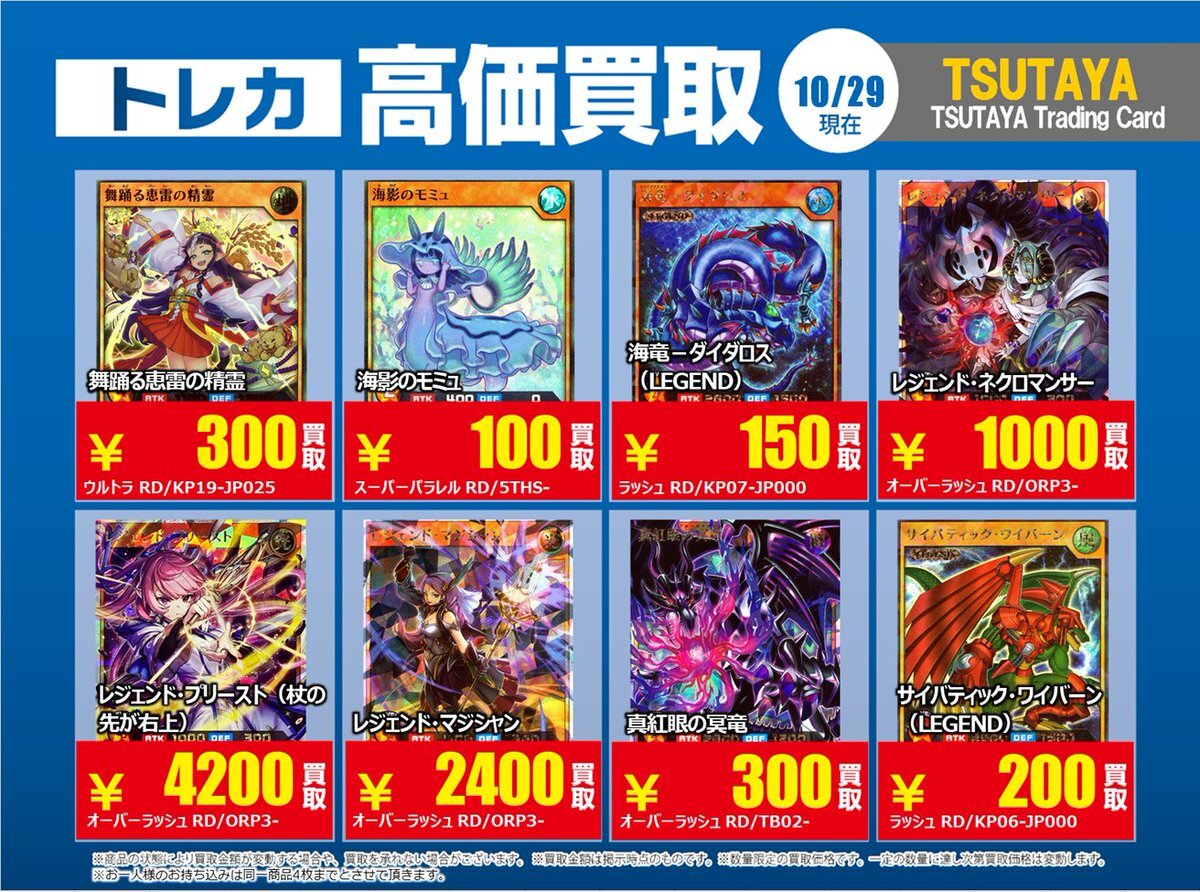 【高価買取情報】 10/28まで #遊戯王ラッシュデュエル 高価買取商品をお持ち頂く場合は レジにてX掲載カードと必ずお伝え下さい。 申告が無い場合は通常価格での買取 となってしまいますのでお気を付け下さい ※在庫状況や商品状態で買取価格が変動 または終了する事がございます #TTC錦糸町店 pic.x.com/AUY0DxkCtK