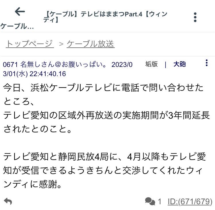 事実ならケーブル・ウィンディこと浜松ケーブルテレビは相当努力していることに。頭が下がる。>浜松市内でのテレビ愛知の区域外再放送受信 #tva #tvtokyo pic.x.com/RdcuBsZILX