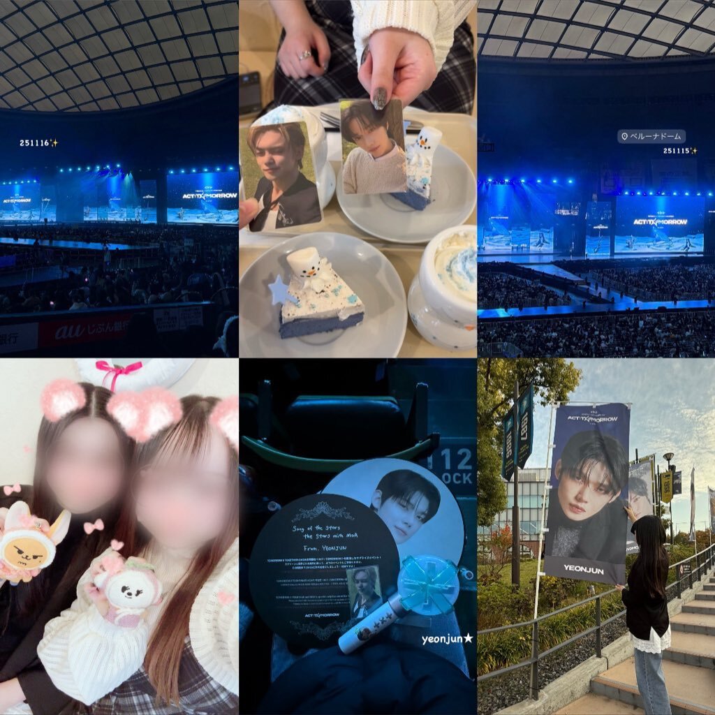 251115.1116✨ 埼玉2日間本当に楽しかった〜😽🍀♩ヨンジュンのTalk to Youも観れて嬉しかったしめちゃくちゃかっこよかったよ❣️ 可愛いカフェにも行けて大満足です☕🩵 #ACT_TOMORROW #TXTと過ごす冬 pic.x.com/k7JxUKaA7l