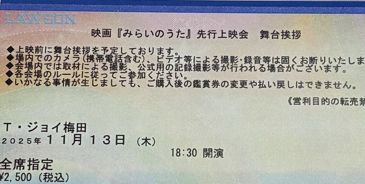 💟『みらいのうた』先行舞台挨拶🎫✅💟 明日、T・ジョイ梅田にて🍀 まだ信じられませんが こんな自分ですが当選頂き Pricelessな奇跡もあるのだと 心から感謝しております🍀 #THEYELLOWMONKEY #イエローモンキー #TYM_STORAGE #TYM_SparkleX #吉井和哉 #TYM_TOUR2425 #舞台挨拶 #みらいのうた pic.x.com/PQb6S992nU