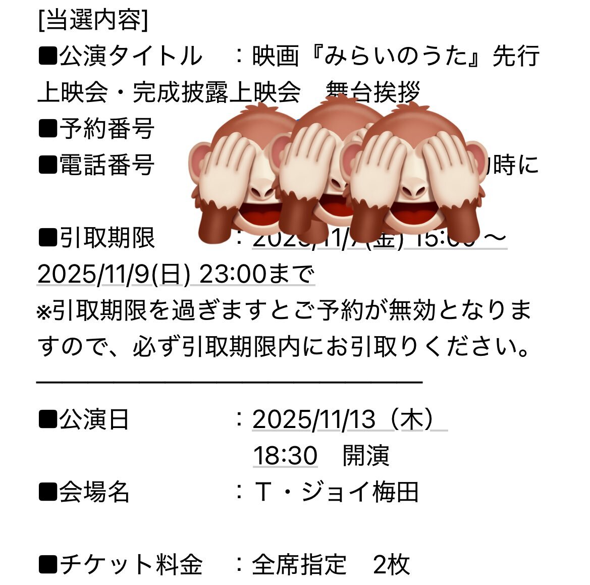 えーーーーーー‼️‼️❤️🔥❤️🔥❤️🔥 当たってました‼️‼️ マジですか🔥🔥🔥 Zepp大阪に引き続き‼️ 『みらいのうた』 舞台挨拶‼️❤️🔥❤️🔥❤️🔥 #THEYELLOWMONKEY #イエローモンキー #TYM_STORAGE #TYM_SparkleX #吉井和哉 #TYM_TOUR2425 #みらいのうた pic.x.com/2weBgeLQl4
