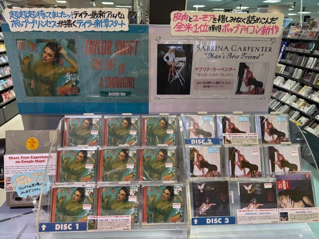 【#TaylorSwift , #SabrinaCarpenter】 #テイラー・スウィフト 『The Life Of A Showgirl』 #サブリナ・カーペンター 『Man's Best Friend』 2人のポッププリンセスの最新アルバム 大好評発売中です🧡💙 店頭でご試聴いただけます! pic.x.com/1iUdfIRYym
