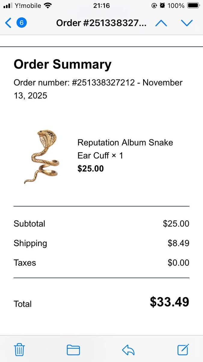 実は長年Swiftieでいながら、一回もメルチ買ったことがなくとても恥ずかしい🥹 なので今回が初メルチデビューしました! あんまり物欲はないので迷いましたが、ショートヘアに似合うイヤカフにしました!🐍 Reputation は本当に大好きなアルバムなので、応援という意味を込めて🖤🖤 #taylorswift pic.x.com/mghJLDTQIJ