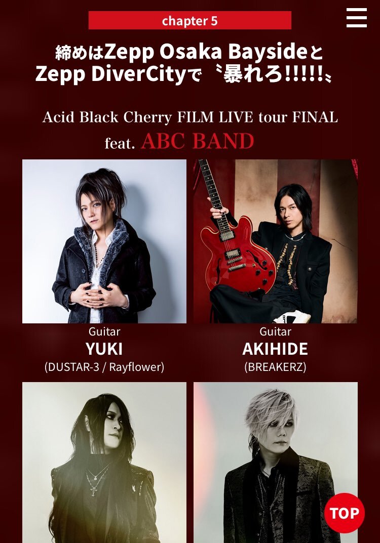 Acid Black Cherry FILM LIVE tour 2025 “『2012』” BananaHall公演は両公演ともに終了いたしました! 11月からはFILM LIVE tour 2025 “L-エル-” が始まります! 初日は明後日、11月2日(日) cubegarden (北海道)公演です!