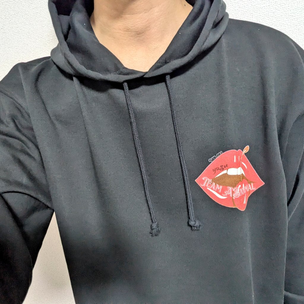 本日、Team奇行種パーカーとTシャツのサンプルが届きましたので共有します👕🍒 サイズ感は⬇️をご参照ください🙌 身長 170cm 体重 57kg 肩幅 50cm 胸囲 83cm ウエスト 70cm #TeamABC #Team奇行種