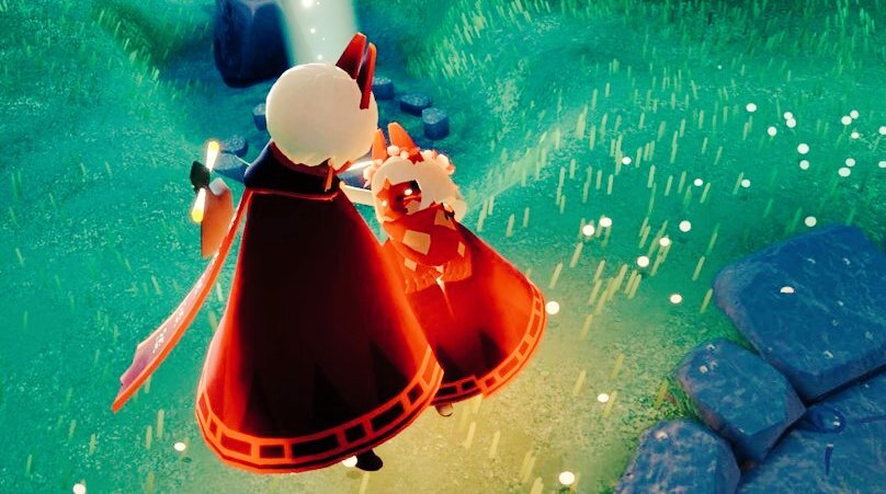 #sky星を紡ぐ子どもたち #thatskygame 秘宝の環礁って黒系ケープが緑になりがち……差してる光が緑色なのかな? pic.x.com/S2NtAjoNqR