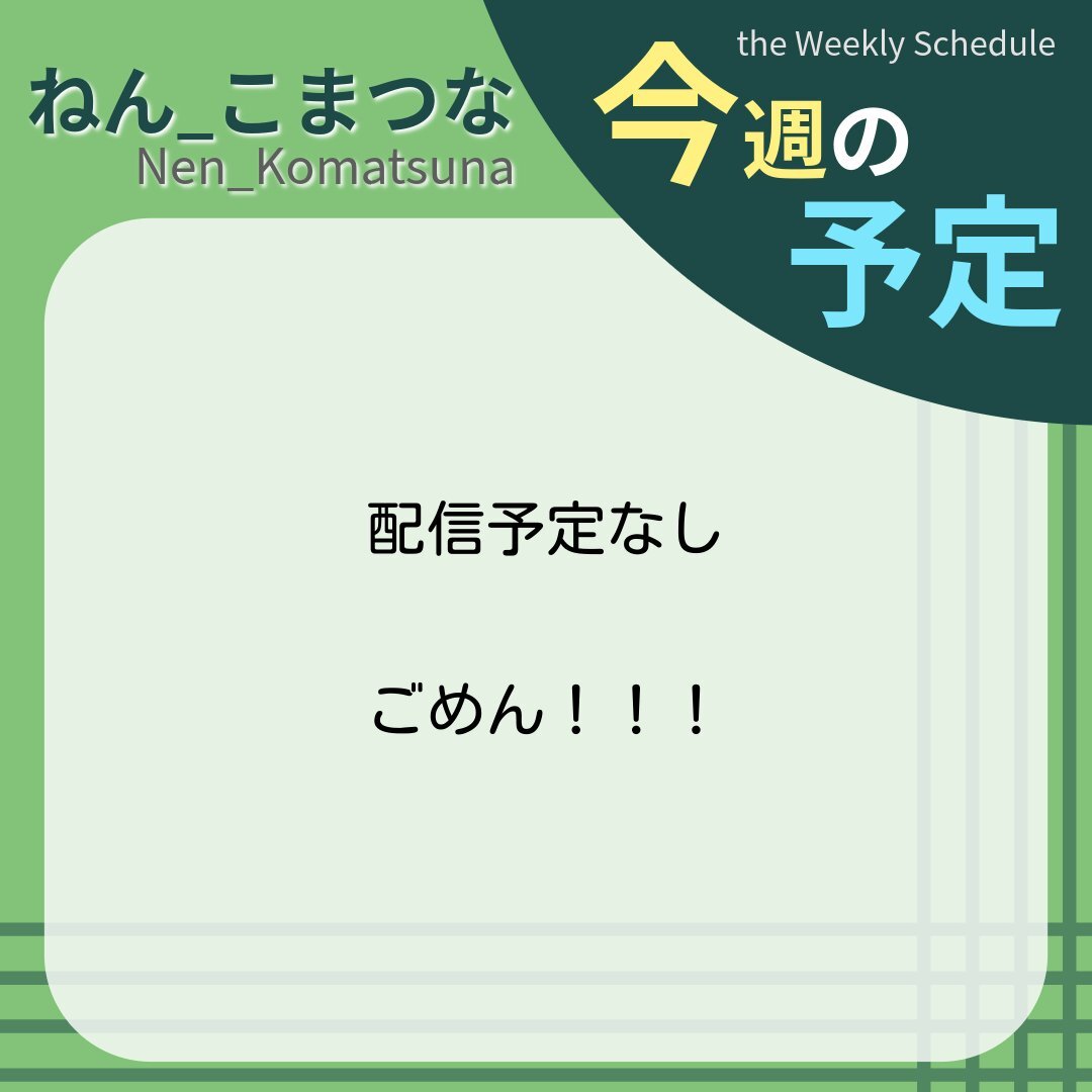 #ねんこま予定表 #今週の予定 多忙につき、暫く予定立てません 気分転換にゲリラ配信はするかも ────────── ◆詳細はこちら:timetr.ee/p/nenkoma_cale… ◆TimeTreeダウンロードURL:timetr.ee/dl/pcs #TimeTreePublic #配信予定 #ゲーム実況 #ゲーム実況者 #twitch #YouTube pic.x.com/yJvVPRgJYR