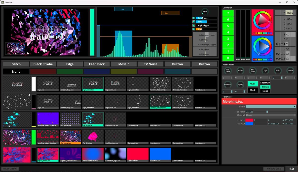 draw(tokyo); #3 ありがとうございました!! ラウンジフロア DJ: @maku693 さんのVJ担当させていただきました✌️ TouchDesigner でVJソフトを自作し参戦していました! いい感じに仕上がったので、後日記事を書いて公開します!! #function_draw #TouchDesigner x.com/tommys_highbal… pic.x.com/z1OpFKfdAV