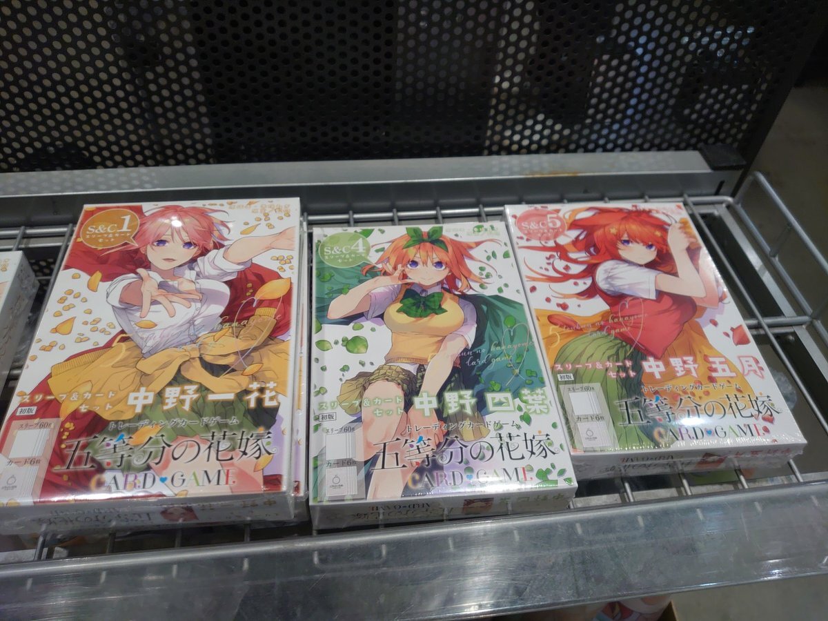 📢店頭在庫ございます😊 11月14 日発売 #五等分の花嫁 カードゲーム スリーブ&カードセット 🔹中野一花 🔹中野四葉 🔹中野五月 品切れの物もございます。店頭在庫も僅かになってきておりますのでお探しの方はお早めに #TSUTAYAあべの橋 #abeno #TradingCard #交易卡 pic.x.com/KyMgQjvBtX
