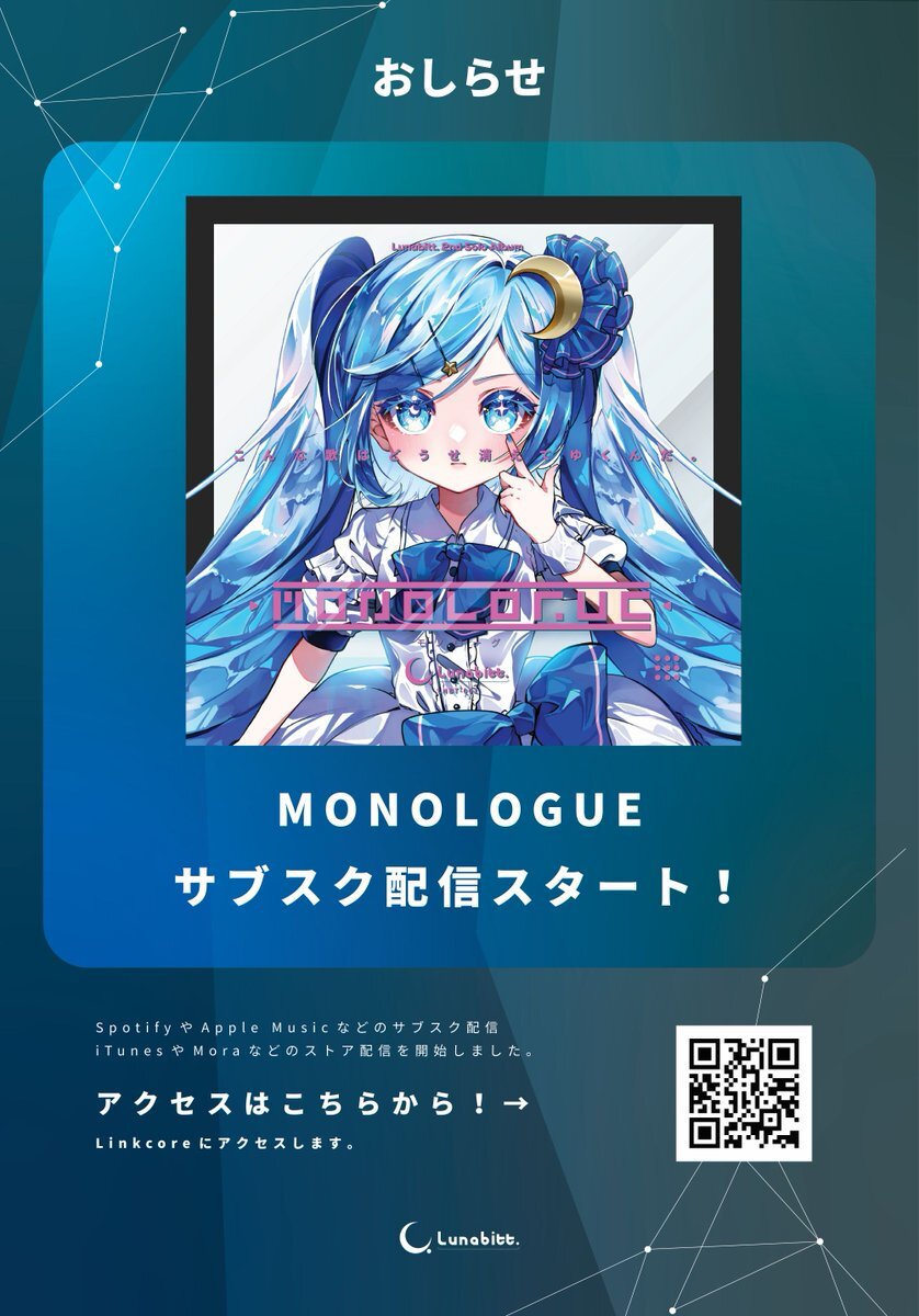 ☪️おしらせ☪️ 先日リリース「MONOLOGUE」 サブスク配信スタートです!!! 沢山お聴きください🌙✨ 各種アクセスは下記リンクから linkco.re/x19vfuA8 #tunecore pic.x.com/9bWzYu7Nr6 x.com/Luna_Bitt/stat…