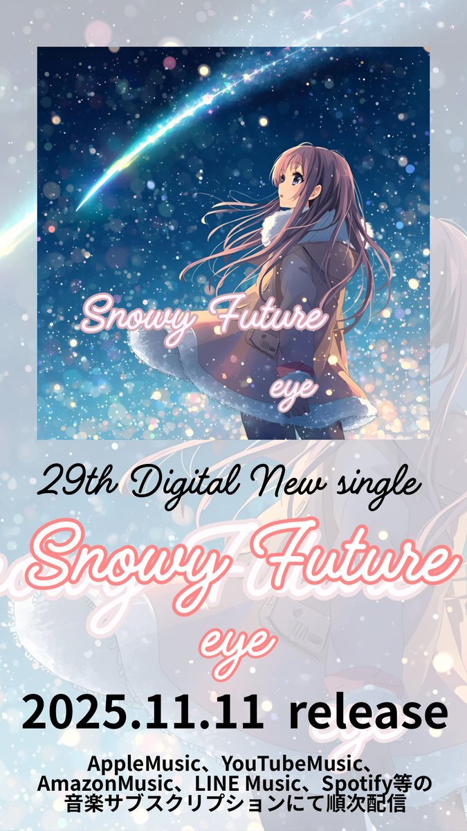release 情報 2025.11.11 Digital New single Snowy Future / eye 配信サブスクは下記のリンク🔗から 確認お願いいたします🙇♀️ linkco.re/8qTXC1bv #ChatGPT #SunoAI #Tunecore pic.x.com/pSw4r6fdRq