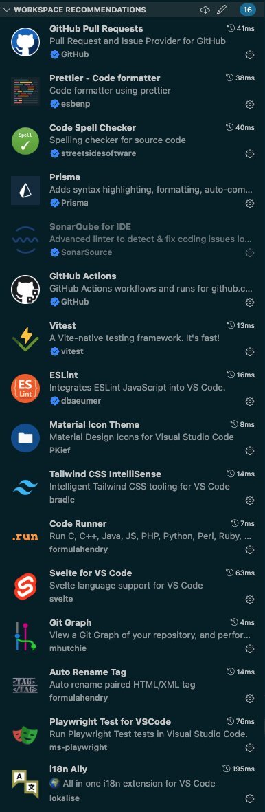 進捗報告 VSCode拡張機能、ちょっと多めに選んでみた。 .vscode/extensions.json を作っておくと、拡張機能の入れ忘れを防げたり、一括インストールができたり色々楽ちんになります。 #ゲーム制作 #gamedev #Svelte #TypeScript pic.x.com/ZGMlP40frF