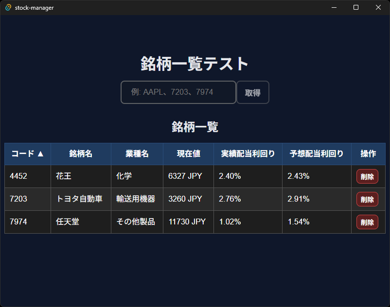 💾 開発中の株式管理ツールに保存機能を追加! 入力した銘柄コードをデータベース(SQLite)に保存するようにし、起動・追加時にDBから取得するようにしました💡 これで毎回入力する手間がなくなり、より実用的になりました✨ #個人開発 #TypeScript #Tauri #Rust #開発ログ pic.x.com/LY9KarZdnd
