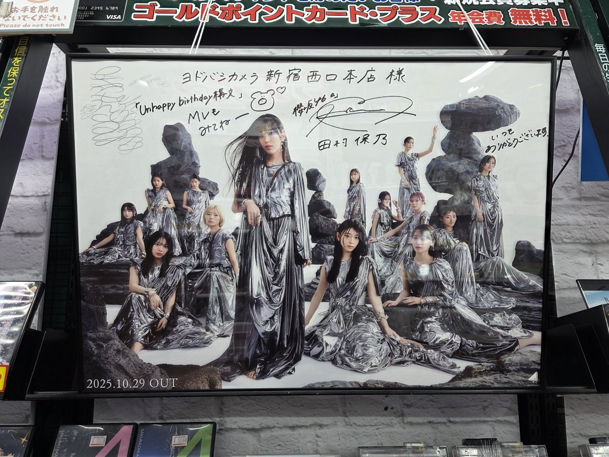 恒例のサイン入りパネル in SHINJUKU ヨドバシカメラ 新宿西口本店:#田村保乃 タワーレコード 新宿店:#山下瞳月 HMV&BOOKS SPOT SHINJUKU:#中嶋優月 #櫻坂46_UnhappyBD構文 #UnhappyBD構文 #ほのす #しー #ゆーづ #櫻坂46 pic.x.com/nky9X9tAH9