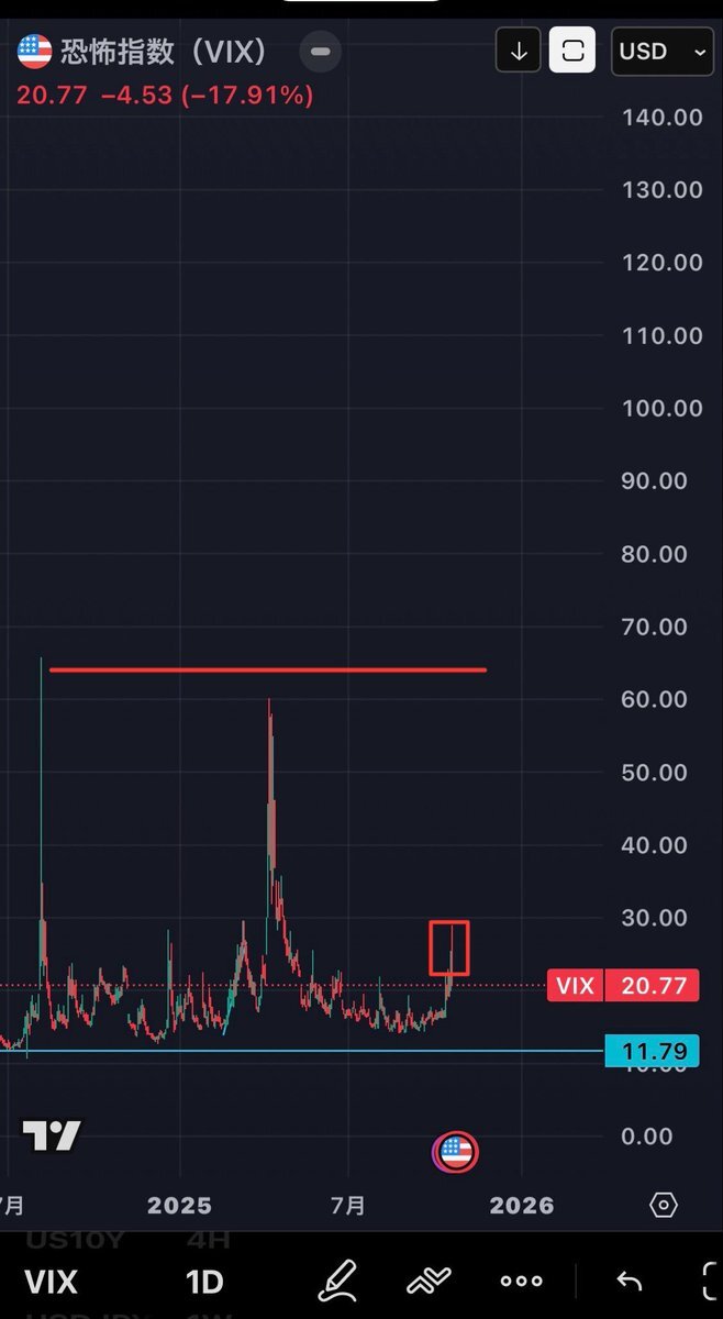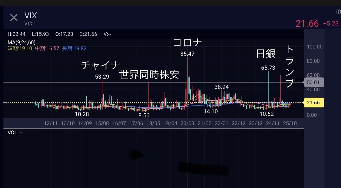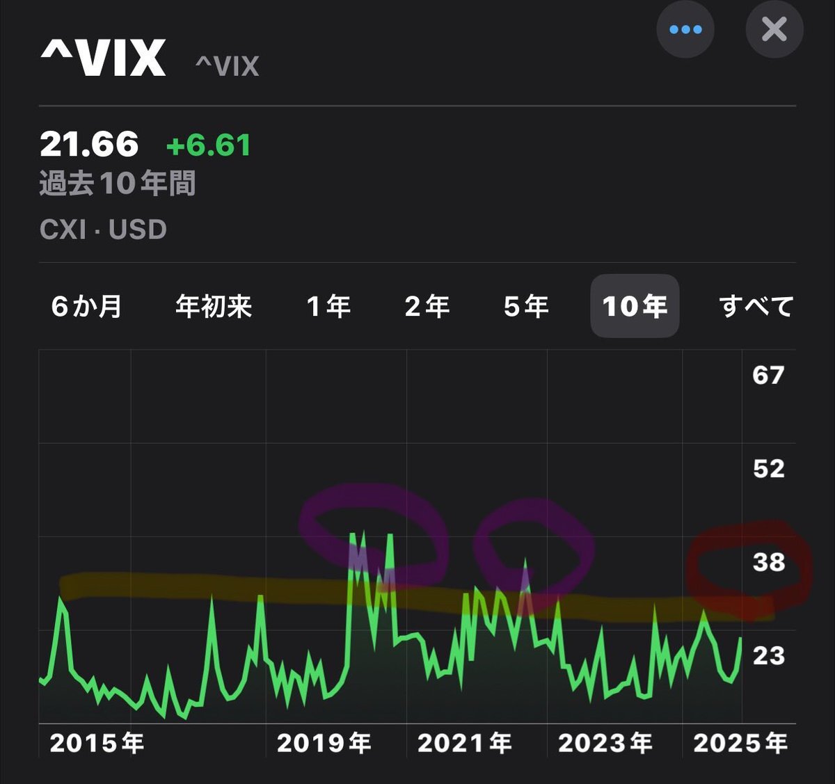 気は早いですが、過去暴落時の VIX指数(数値の誤差すみません🙇‍♂️) 8年 リーマンショック…89 11年 ギリシャ通貨危機…46 15年 チャイナショック…53 18年 世界同時株安…50 20年 コロナショック…85 22年 ウクライナ情勢…38 24年 日銀ショック…65 25年 トランプ関税…60 50以上は買い場💰