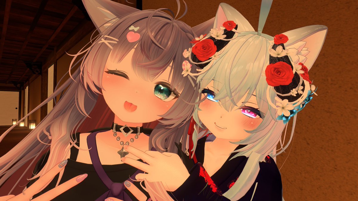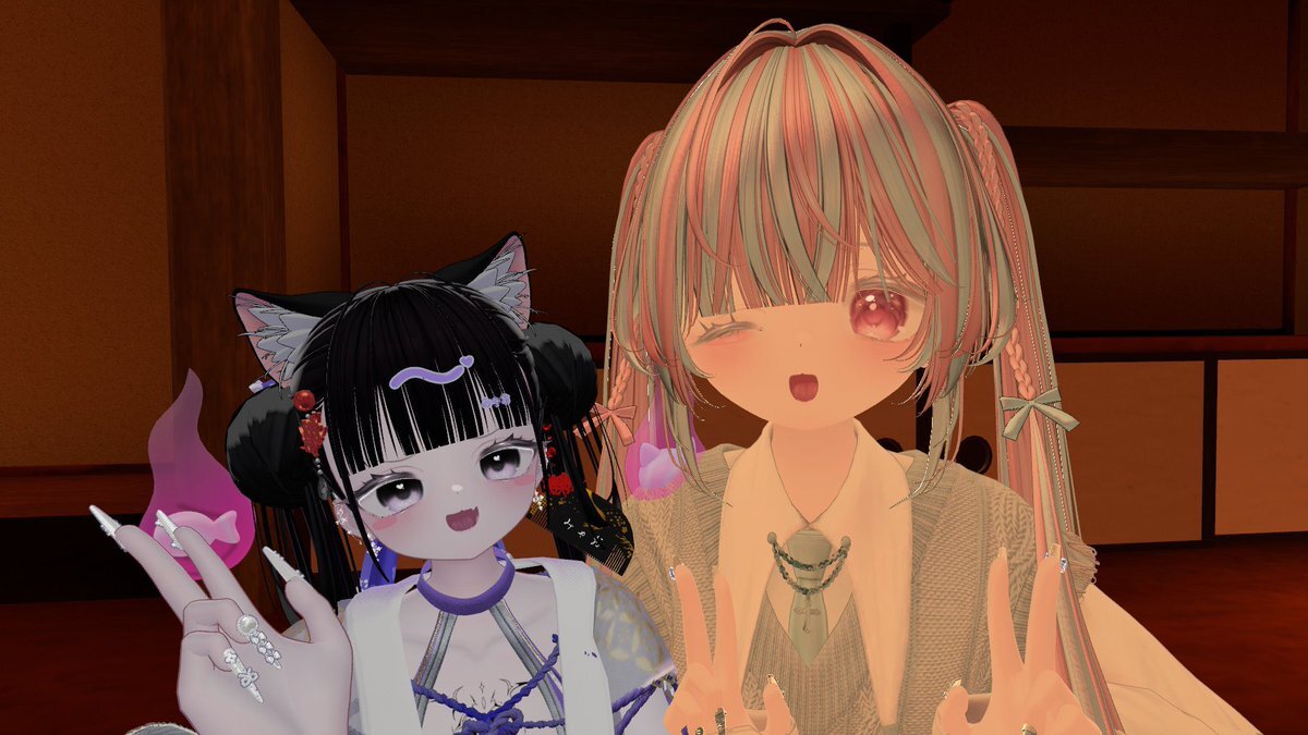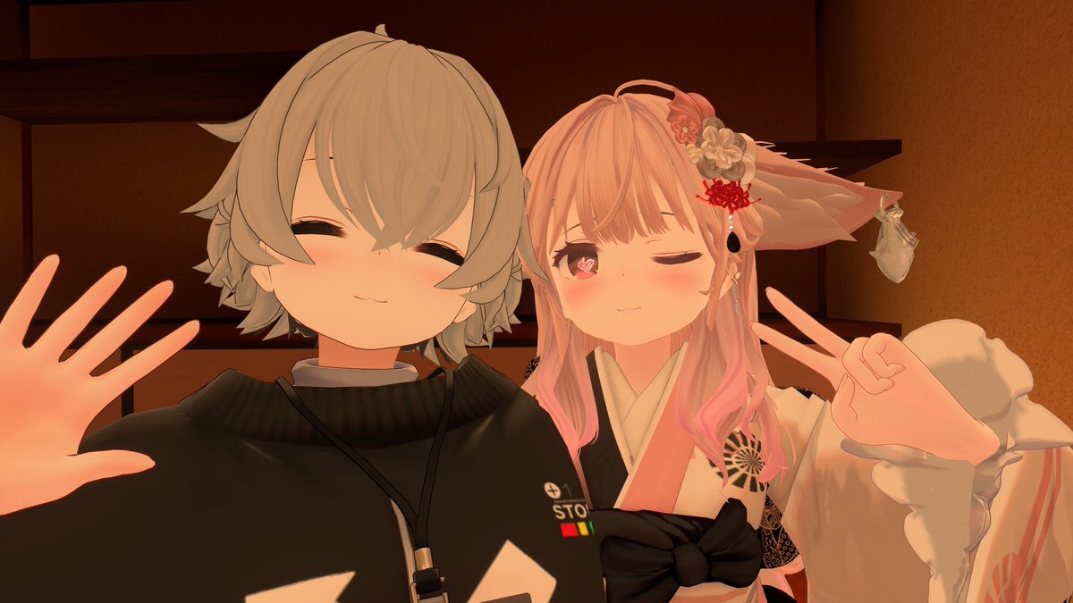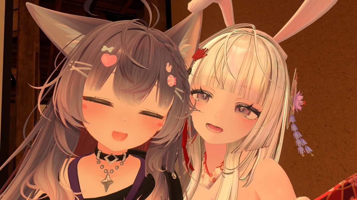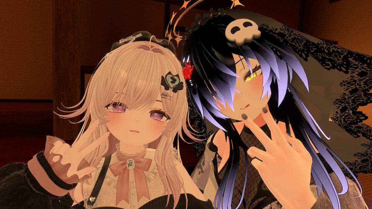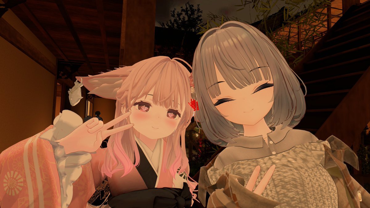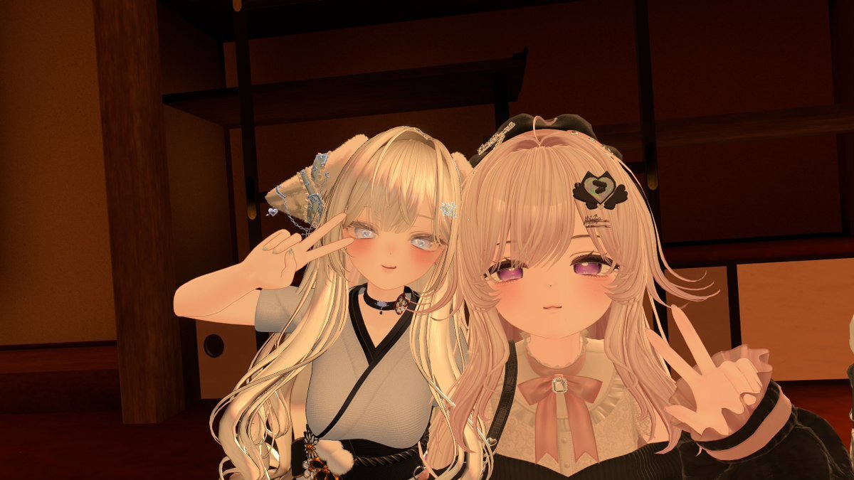 #VRCおうまがとき のアフターいってきましたー にゃおさんと! いっぱい洋服褒めてもらってとてもにこにこ! うささんと! おうまがときのうささんにも会えたらいいなーって…勝ちたい…! pic.x.com/DKELmBrLAD
