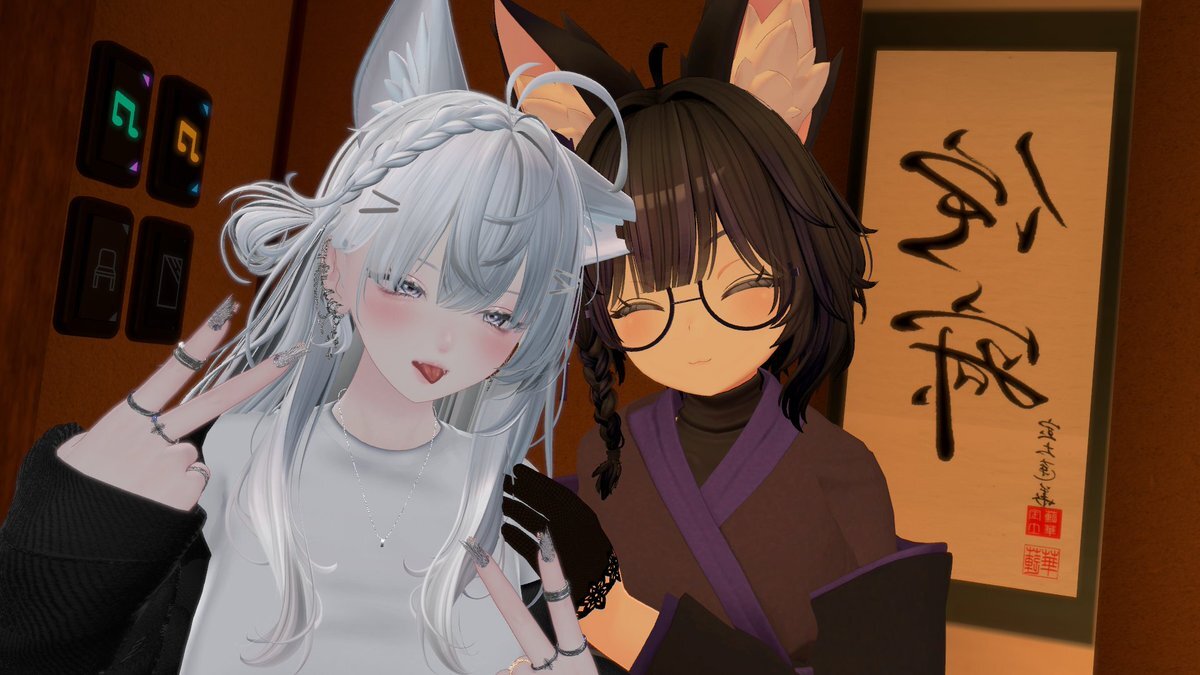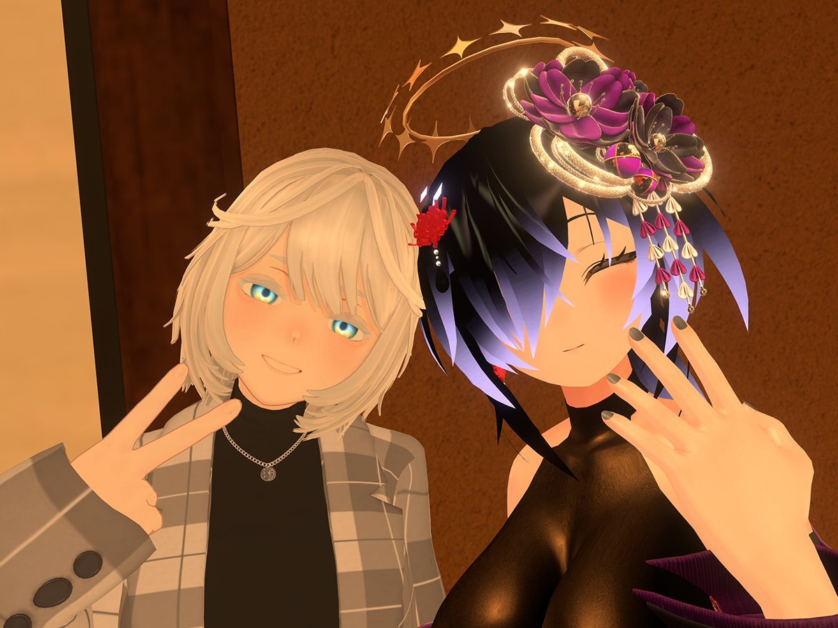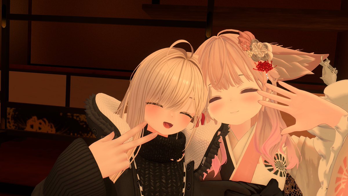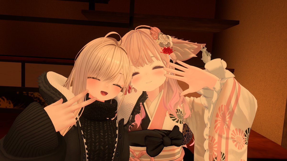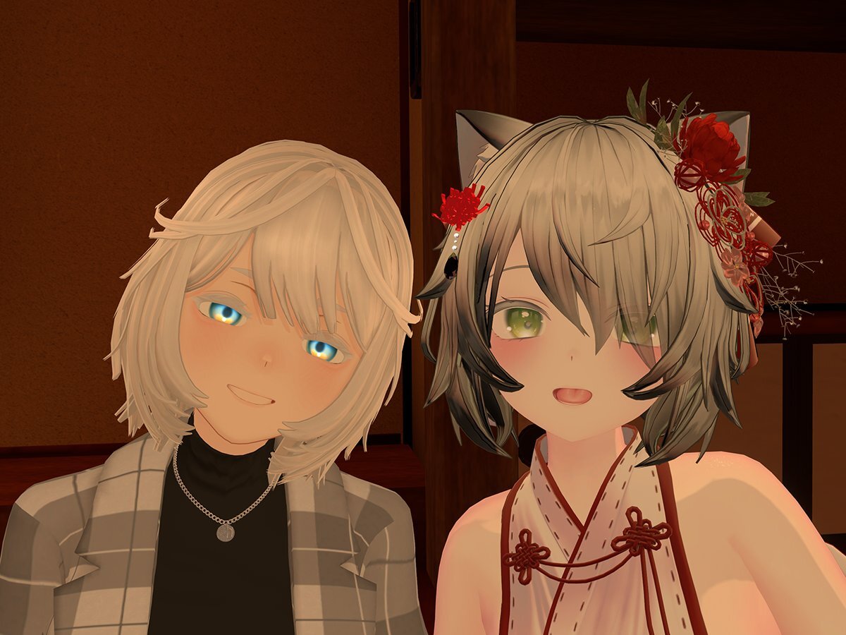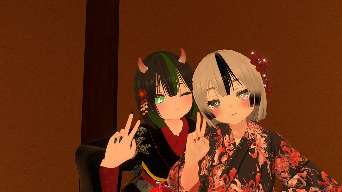 #VRCおうまがとき のアフターいってきましたー にゃおさんと! いっぱい洋服褒めてもらってとてもにこにこ! うささんと! おうまがときのうささんにも会えたらいいなーって…勝ちたい…! pic.x.com/DKELmBrLAD