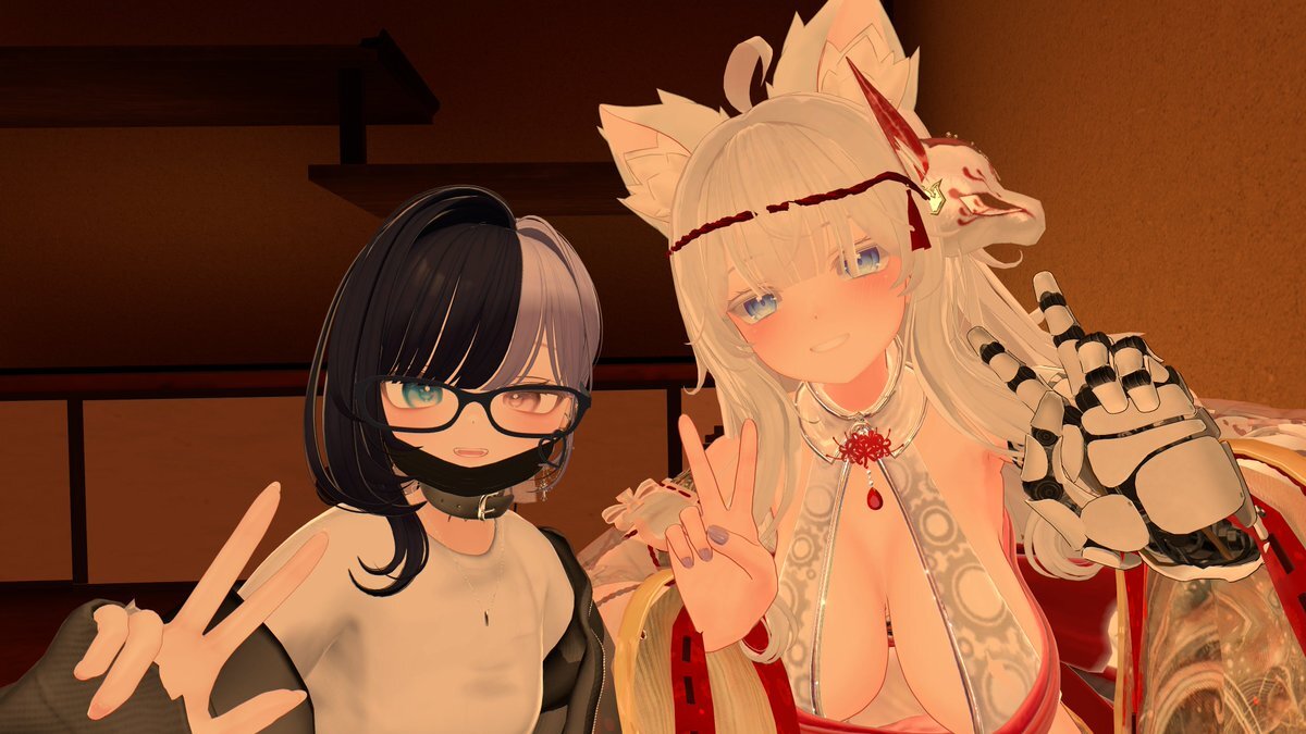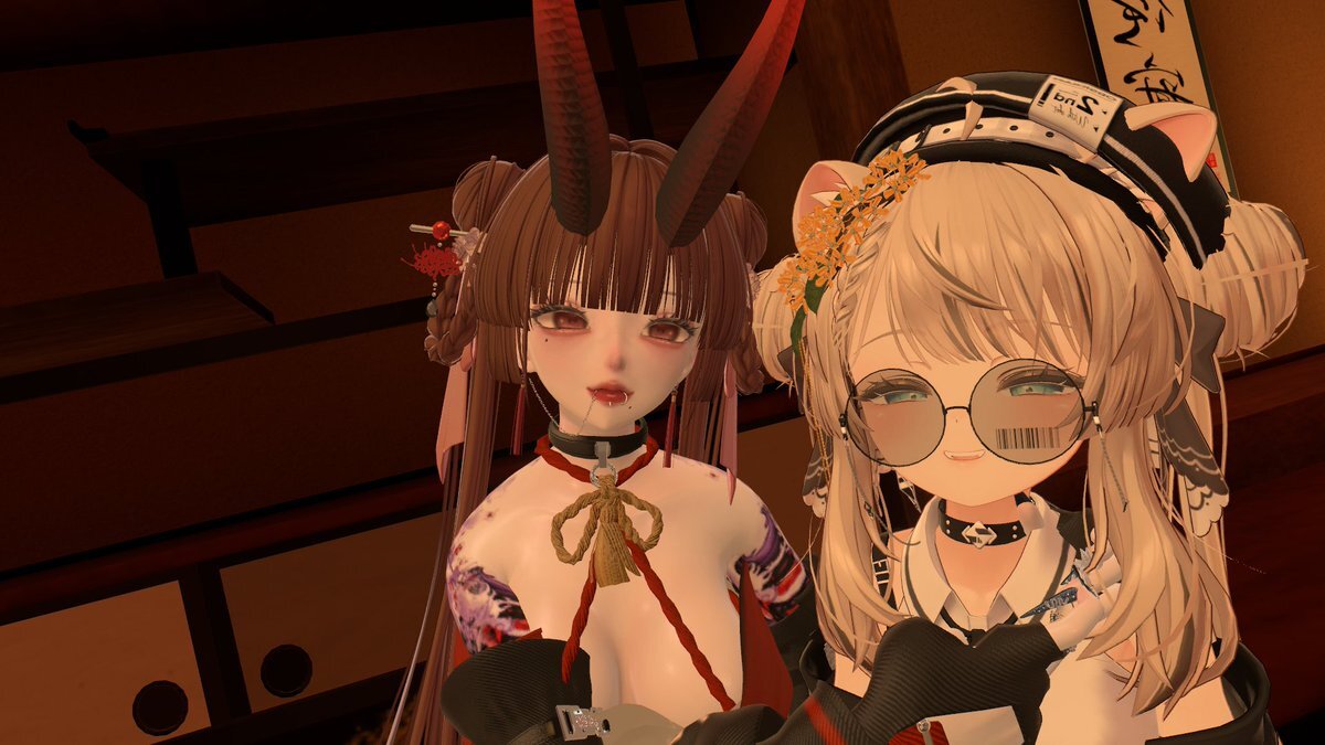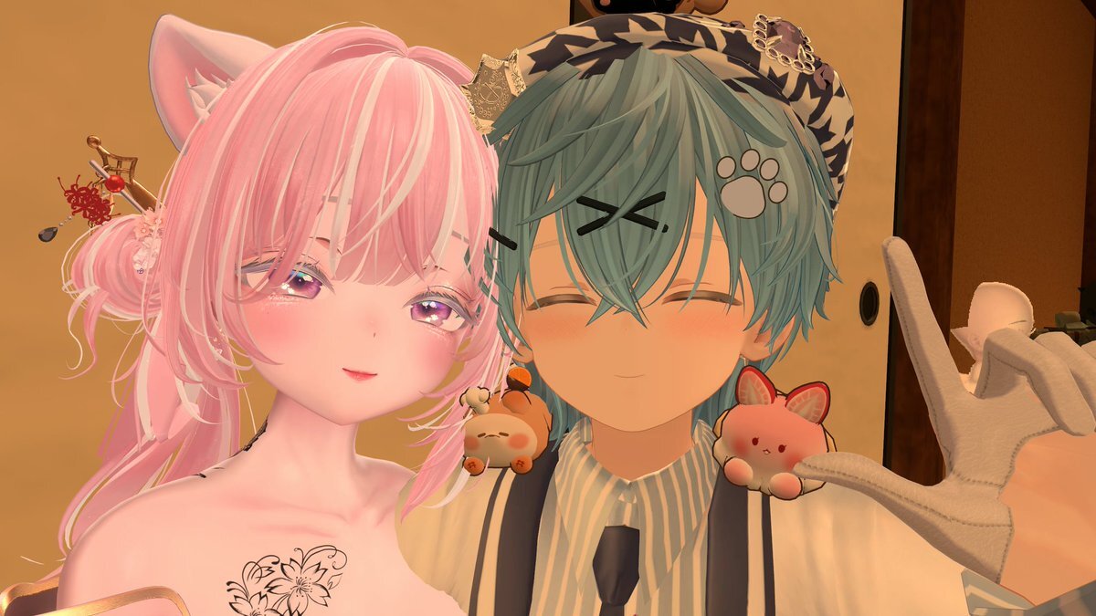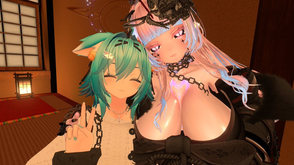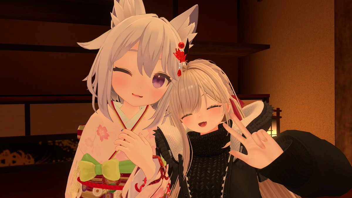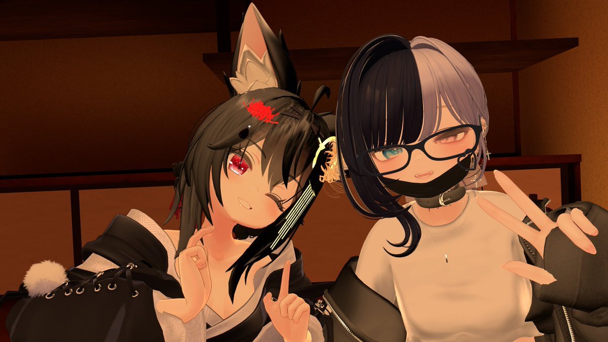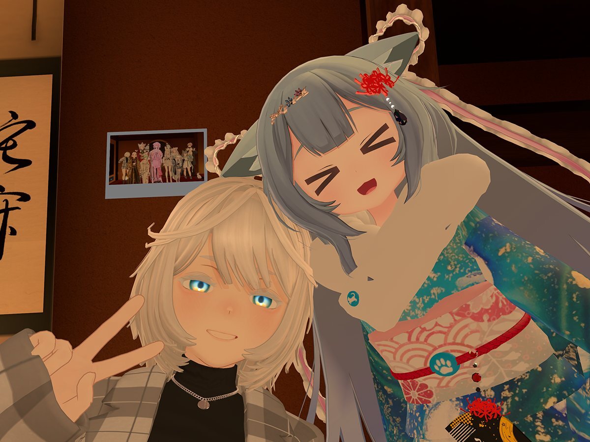#VRCおうまがとき のアフターいってきましたー にゃおさんと! いっぱい洋服褒めてもらってとてもにこにこ! うささんと! おうまがときのうささんにも会えたらいいなーって…勝ちたい…! pic.x.com/DKELmBrLAD