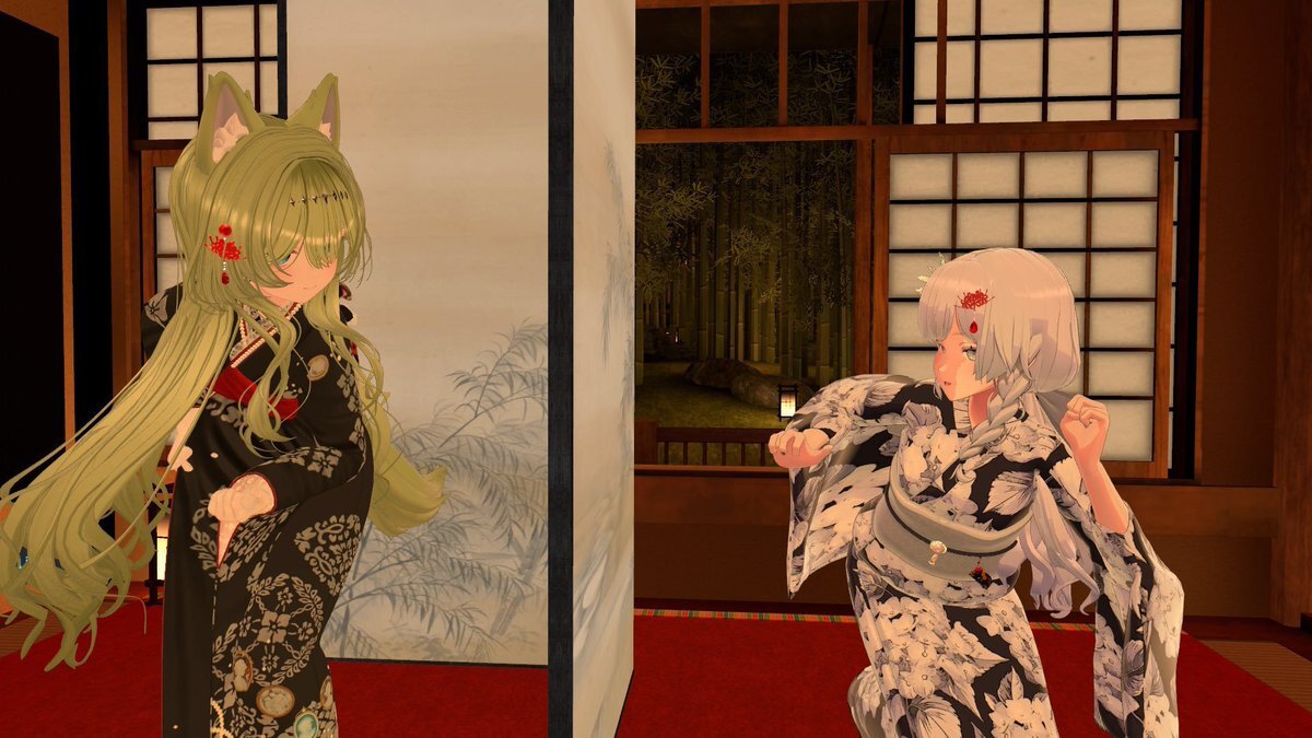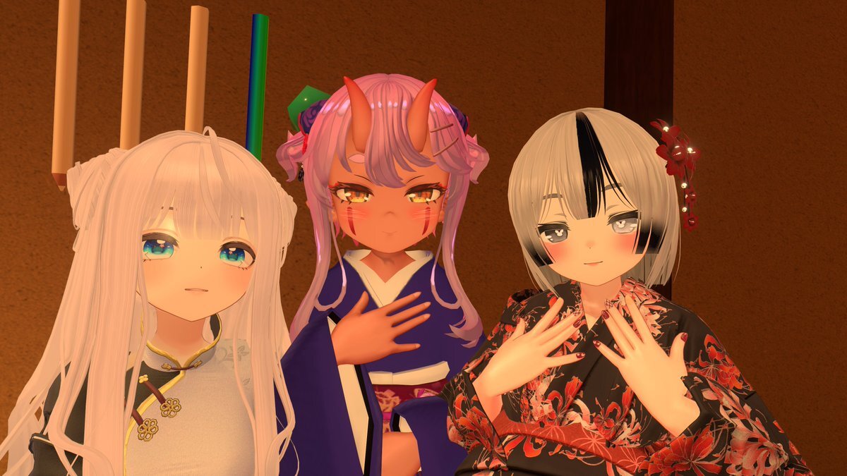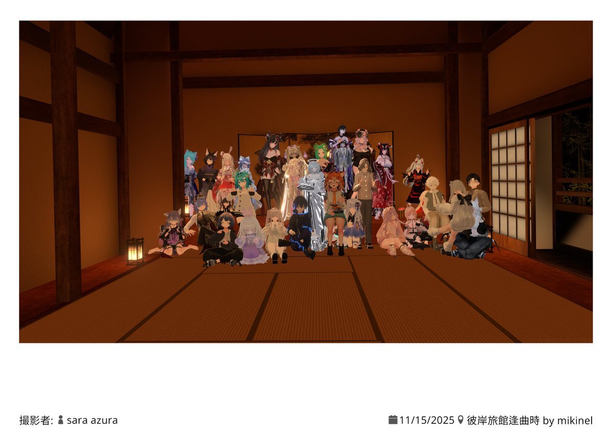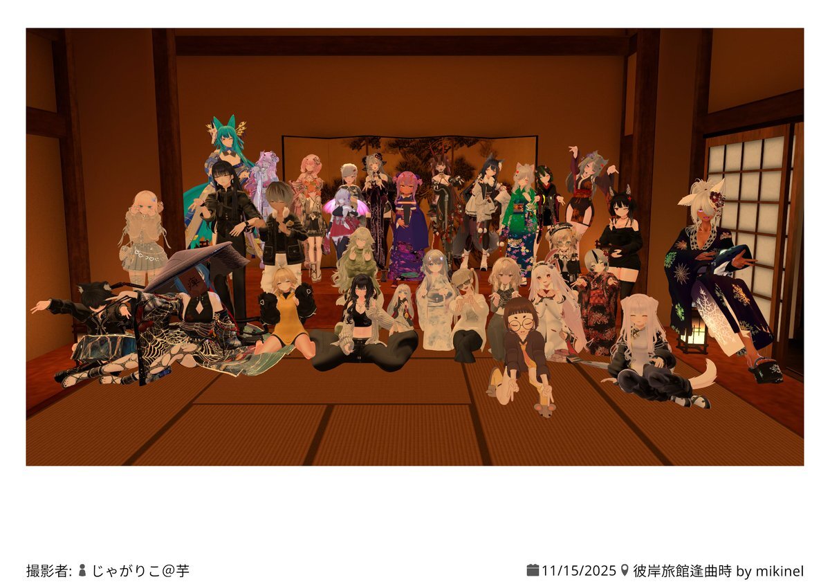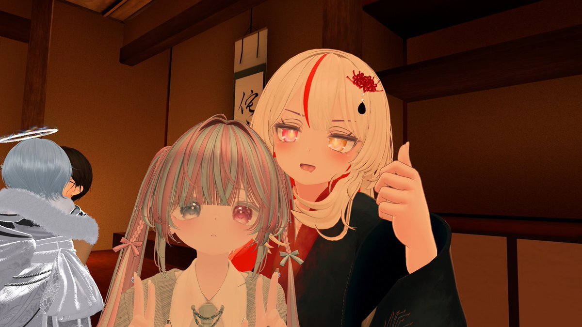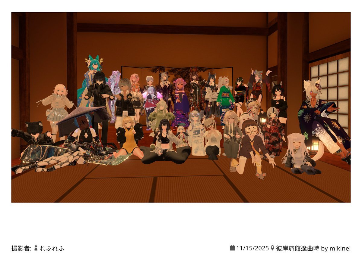 昨晩はご縁があり、実に7か月ぶりに彼岸旅館「逢曲時」に再びお招きいただきました✨ あまり期待していなかったので招待が来た際は三度見しました😇 個性豊かな誘魅たちと楽しくお話したり、 芸者の素敵な演目を見て佳い夜を過ごせました🌙 またいつか迷い込めますように…🦋 #VRCおうまがとき pic.x.com/hQNO4uc0mN
