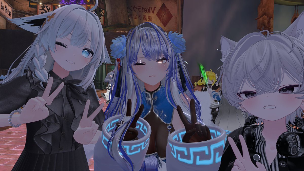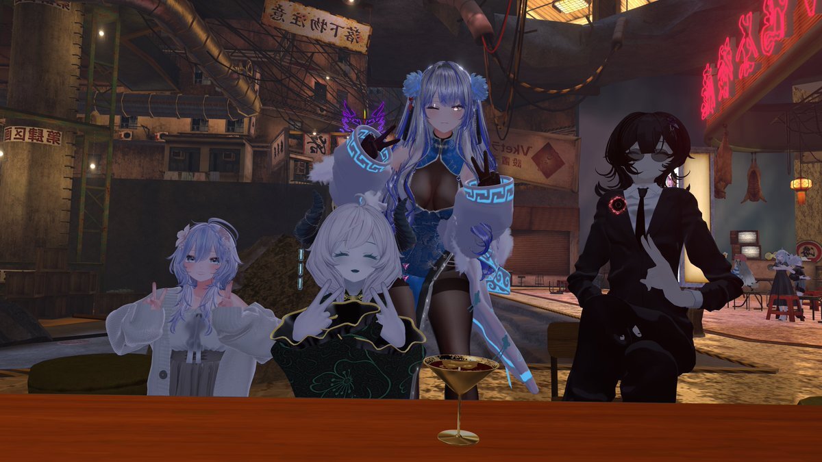 #VRC_DoNow 11/11 22:30~ DoNow特別回如何でしたか?久々のキャスト参加でした🥃(逢曲時側です笑) Vケットの九龍🐉が楽しみだったので、チャイナ服で参加できて良かった🐼 初めてお会いした方が多かったけど、良かったらまた来てね💙 #Vketラウンジ #VRCおうまがとき pic.x.com/fEldPWa5Jf