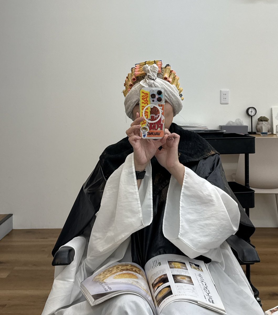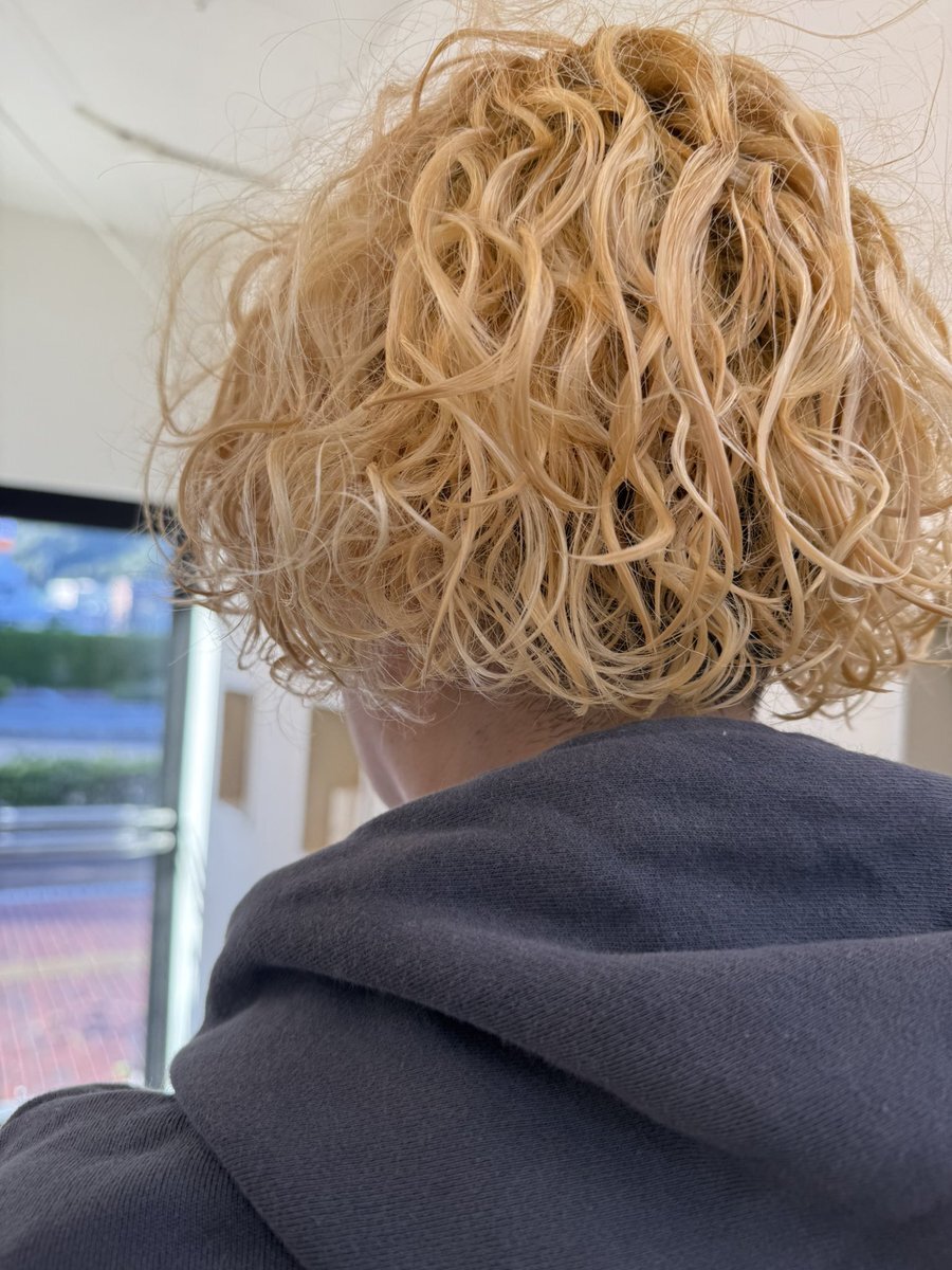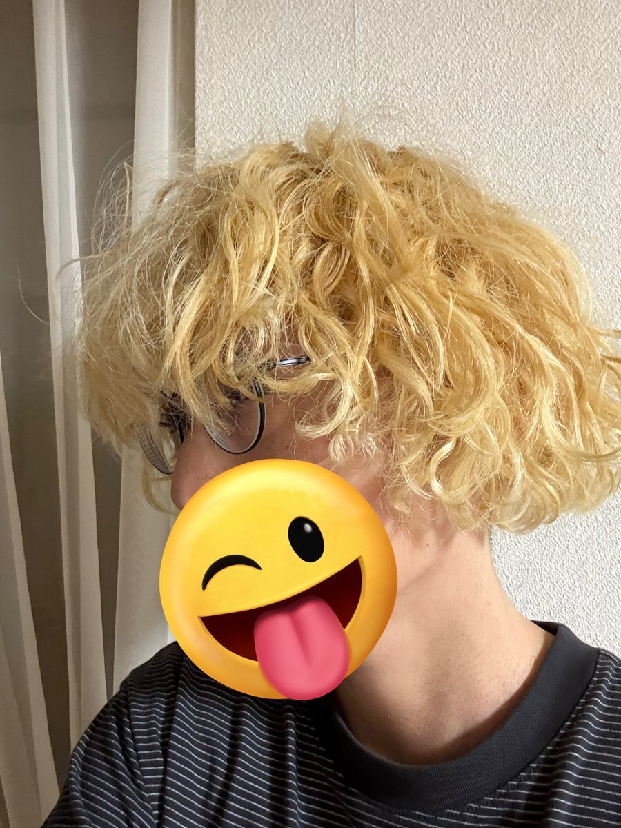 ブリーチしてるから パーマかかりにくいんだけど 前回よりも 径が小さめのロットで 本数増やして スタイリストさん 頑張ってくれました👏 しっかりセットすれば もふもふ感出せるらしい… 自宅近いから 半乾きで📷✨ 光の加減で髪の色味が違うのがオモシロイ!! ガーシア楽しみ🐸 #Vaundy_littlepunk pic.x.com/5GEVMTZjDl