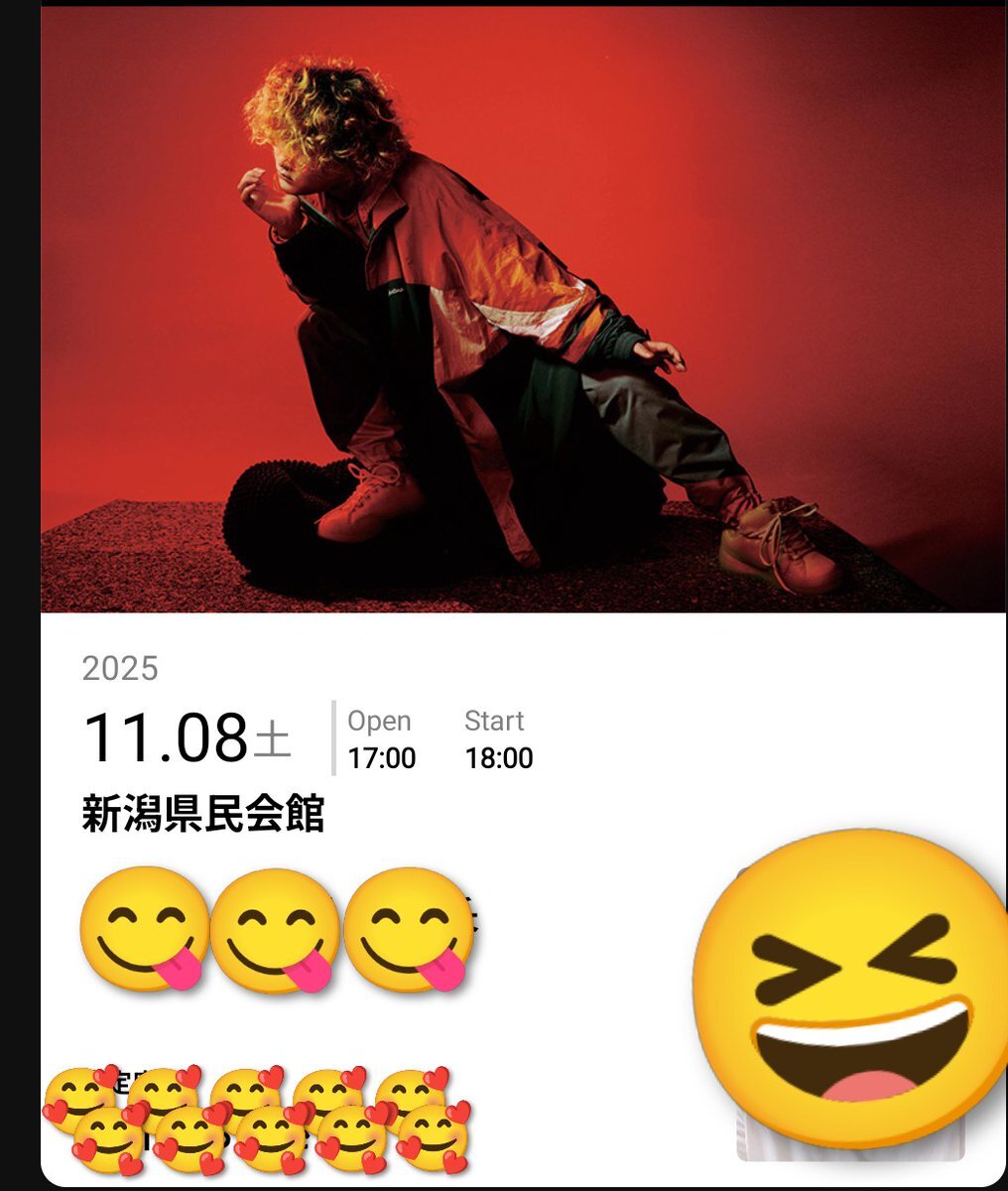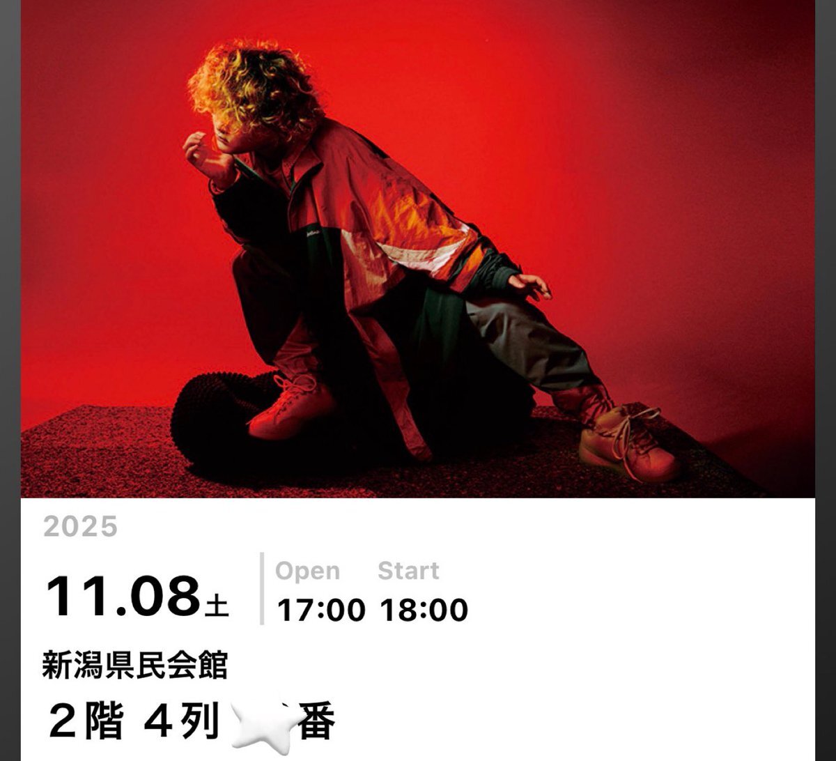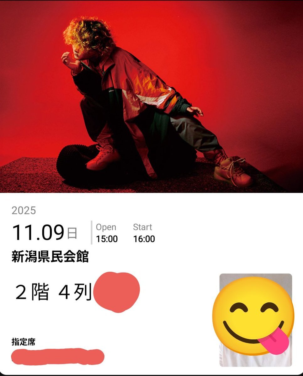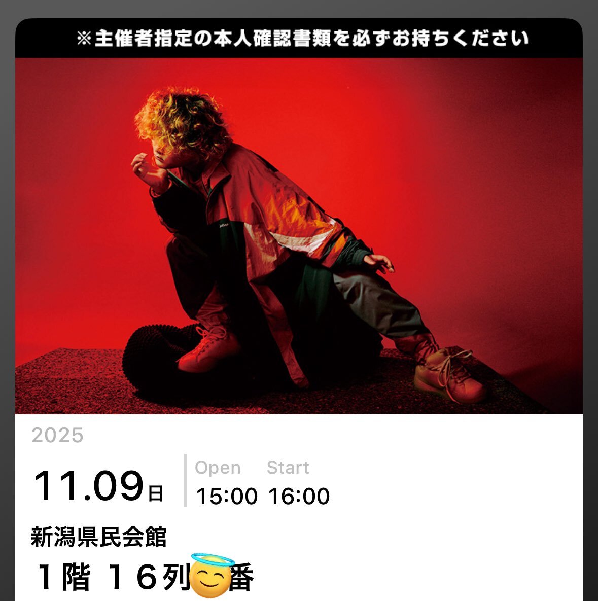 新潟Littlepunk ホルツ 9日(日) 行きます! よろしくお願いします✨ 座席 2階 でした✨ 初の2階席🥹✨ 演出や、照明の美しさを じっくり見れたらいいな😁 バウ君の歌声は最高✨ 楽しみ😁 #Vaundy #Vaundy_littlepunk