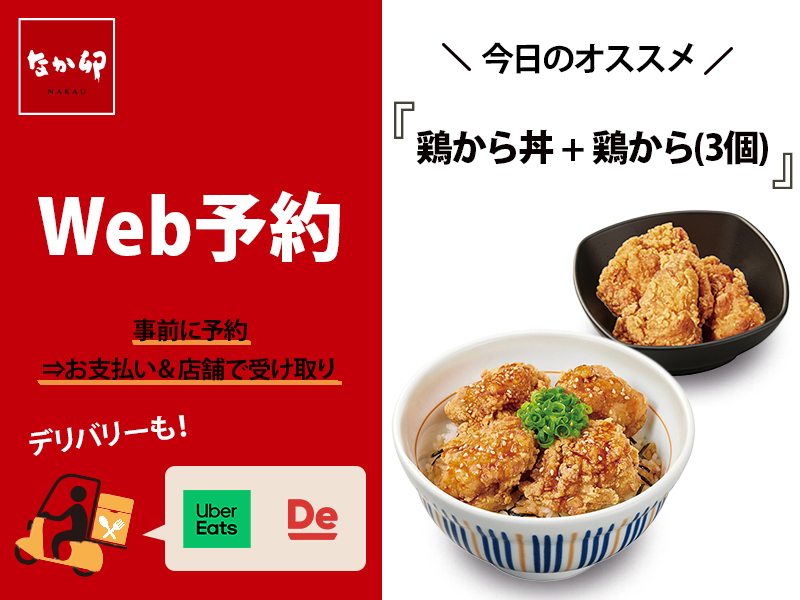 なか卯の #Web予約#デリバリー🍚 Web予約なら、事前に予約⇒お支払い&店舗でお受け取り🥡 今日のオススメは『鶏から丼+鶏から(3個)』 『鶏から』が大好きなので、さらに追加しちゃいました…(´>∀<`)ゝ✨ 家でゆっくりしたい日はデリバリーも😊 ご予約👉bit.ly/45a35T5 #なか卯 pic.x.com/XSpO4mzBsF