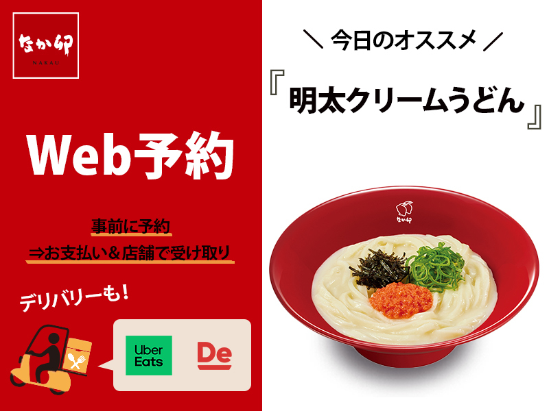 🥢なか卯の #Web予約#デリバリー🍚 Web予約なら、事前に予約⇒お支払い&店舗でお受け取り🥡 今日のオススメは『明太クリームうどん』 博多明太子と北海道クリームの、濃厚クリーミーな味わいがたまりません✨ お家でゆっくりしたい日はデリバリーも😊 ご予約👉bit.ly/45a35T5 #なか卯 pic.x.com/3TJqKVQfUt