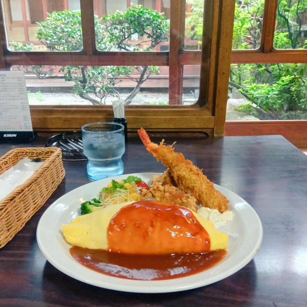 #北極星 #心斎橋本店 #プチオムライスセット #チキン #1520円 #北極星心斎橋本店 #オムライス発祥の店 #WEB予約 日本家屋が素晴らしい。坪庭を眺める席を用意して頂きました。オムライス激(゚д゚)ウマー。 pic.x.com/9DvcHx8yBI