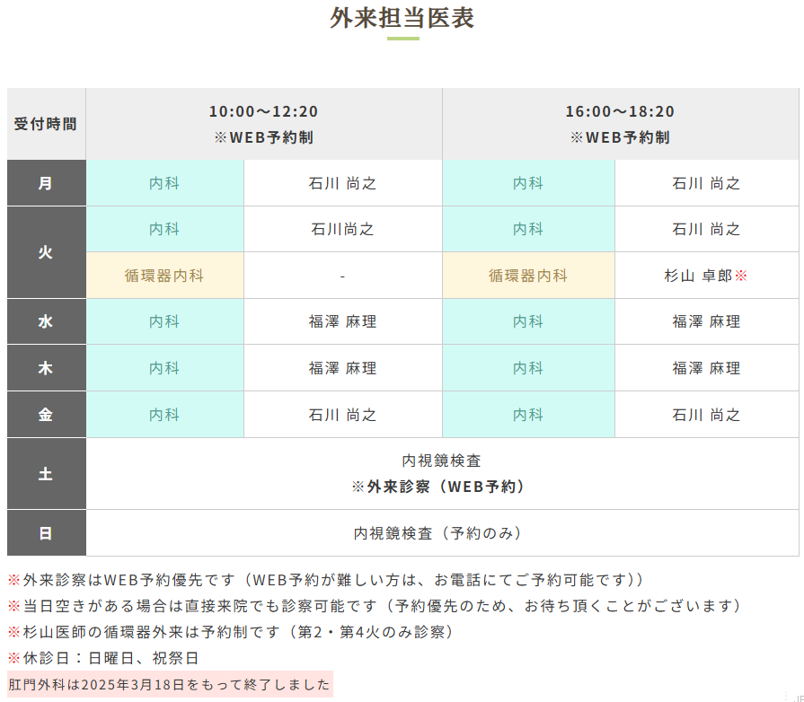●外来診察は 、当日20分前まで #WEB予約 可能です → #内科診察#大腸カメラ の事前診察、#便秘外来#ピロリ菌外来#健康診断2次検査#発熱外来●診察医師は、外来担当表(kisa-cl.com/turntable.html) よりご確認ください #胃カメラ #日帰りポリープ切除 #内視鏡ドック #インフルエンザ予防接種 pic.x.com/UDUvdMNQbg