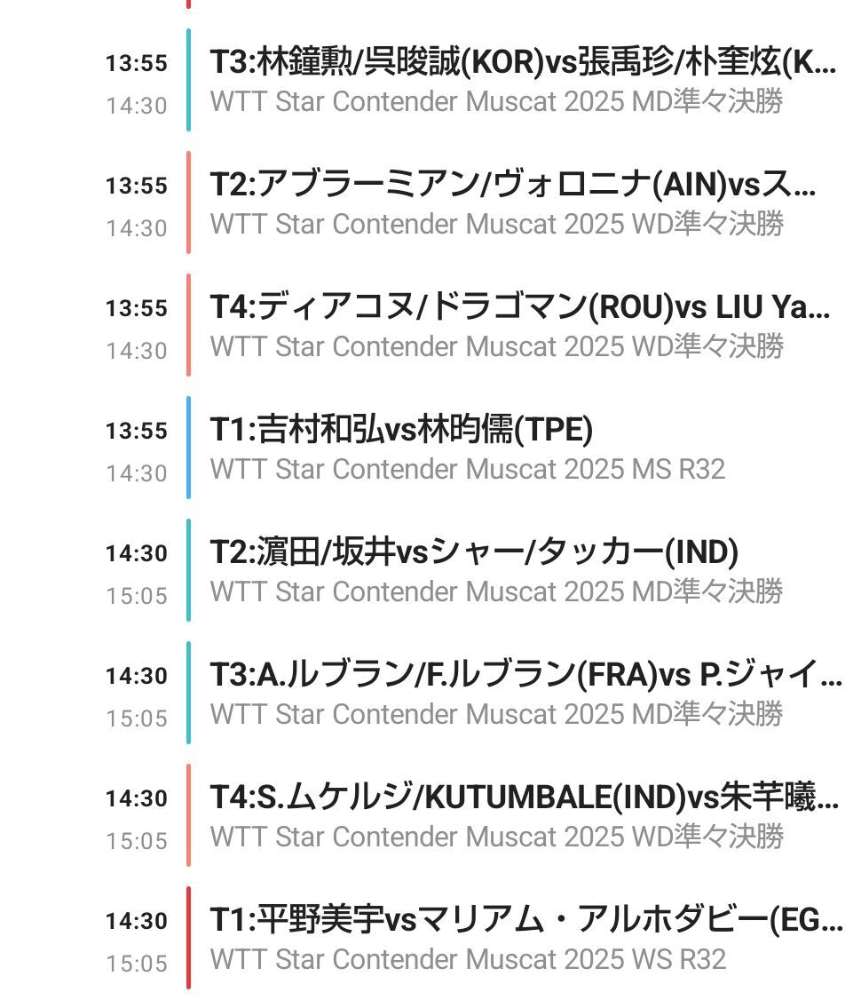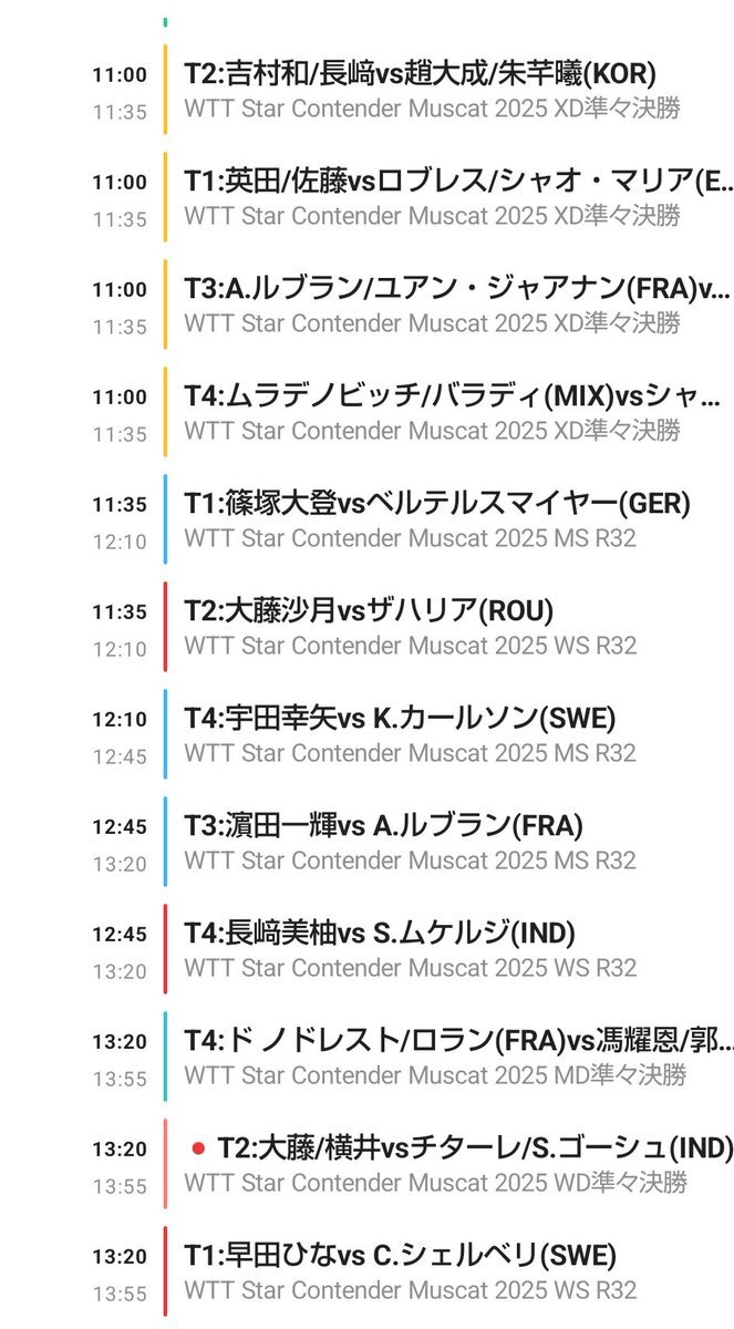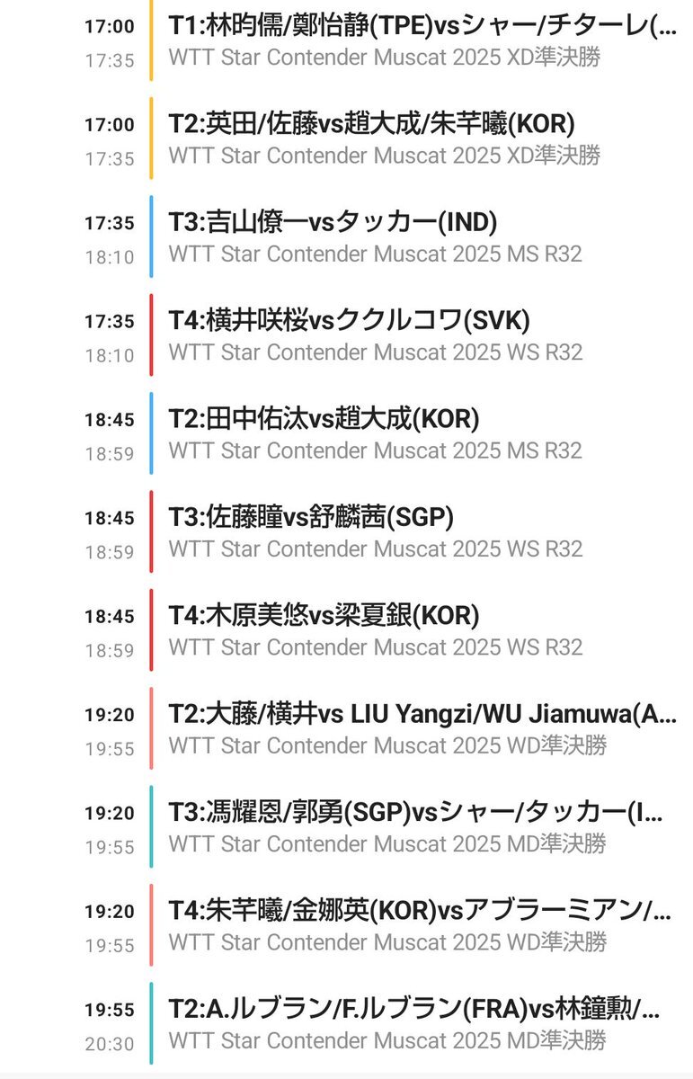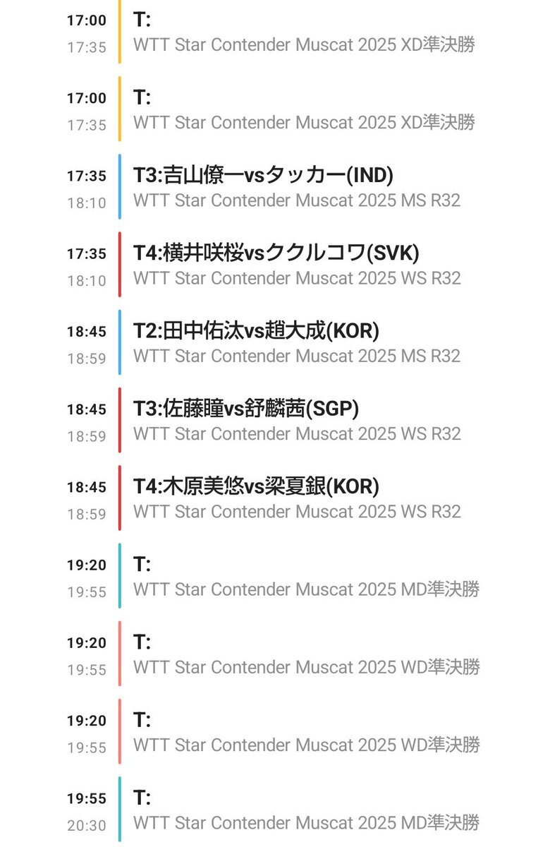 #WTTスターコンテンダーマスカット2025 今日11/20の夕方セッションの日本選手および準々決勝以降の試合スケジュール 日本時間は5時間足してください。 #卓球🏓 #WTT #WTTスターコンテンダー #WTTStarContenderMuscat #オマーン
