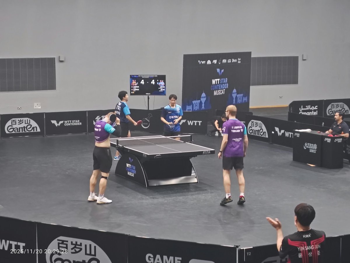 Hall2では、チュチョンヒ、パクガンヒョン、ウジンと韓国勢3人が並んで戦っています。 #卓球🏓 #WTT #WTTスターコンテンダーマスカット #WTTStarContenderMuscat #オマーン pic.x.com/an85I1qsqk